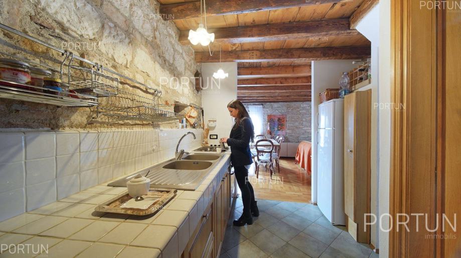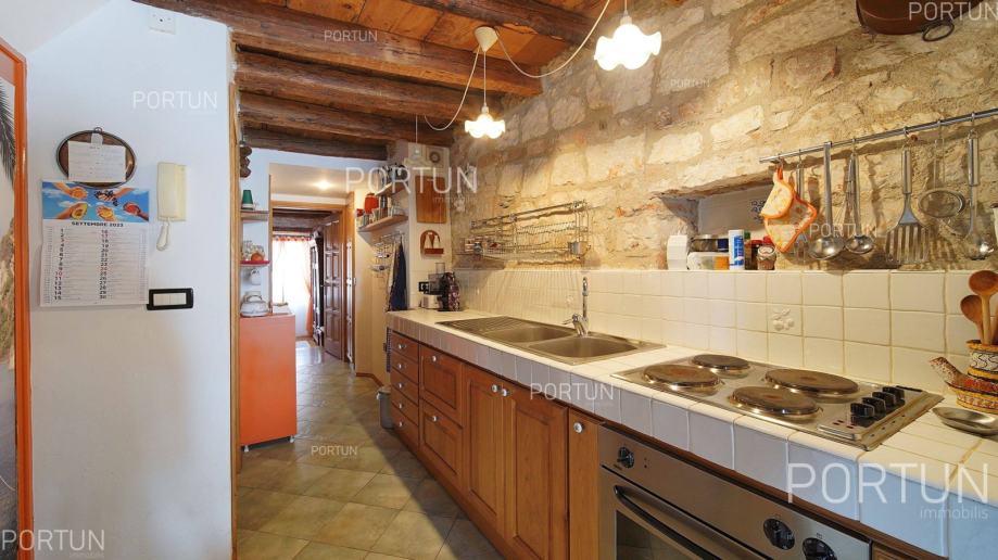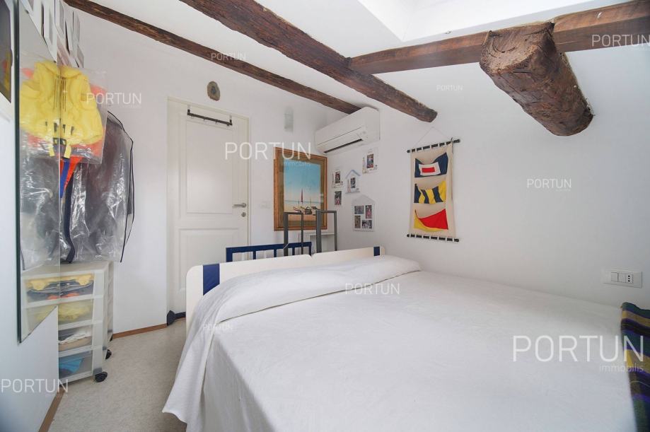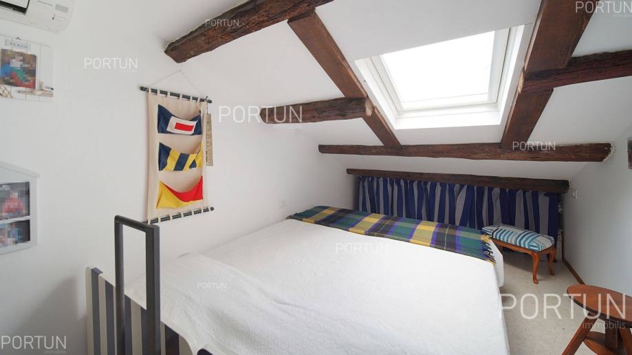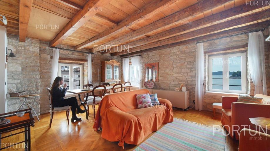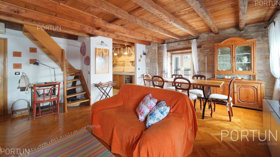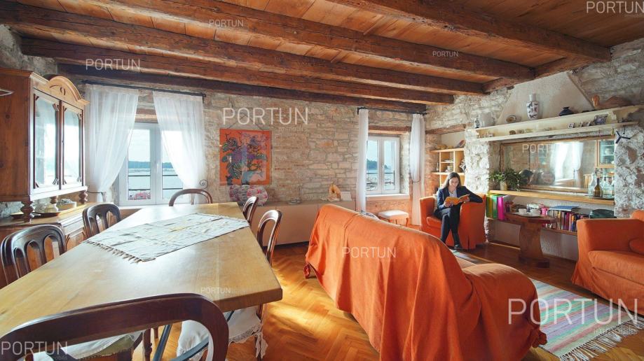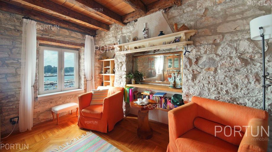 Rustikalno uređen stan u samom centru Rovinja raspolaže s čak četiri spavaće sobe, a posebno dojmljiv je prostrani dnevni boravak iz kojega se kroz čak tri prozora pruža pogled na more. Stan se proteže kroz 4. kat i potkrovlje srednjovjekovne kamene kuće smještene na prestižnoj lokaciji između rive i glavne trgovačke ulice Carere. Sadašnji vlasnici su stan temeljito obnovili 2002. godine u rustikalnom stilu, ostavivši vidljive prekrasne kamene zidove i drvene grede koje svjedoče o prošlim stoljećima. Ugođaju toplog obiteljskog doma doprinose i veliki tradicionalni kamin kao i drveni podovi iz masivnog parketa. U stanu se može smjestiti osmeročlana obitelj – na raspolaganju su dvije spavaće sobe s odvojenim krevetima i dvije spavaće sobe s bračnim krevetima. Ovaj stan nudi fantastično iskustvo života na izvanrednoj lokaciji uz samo more u jednom od ljepših gradova na Mediteranu, a uređen je na tradicionalan način koji će vas prisili da usporite životni tempo te u odabranom društvu uživate u čaši vina i pogledu na more. KLJUČNE OSOBINE✔ Izvrsna lokacija u blizini brojnih sadržaja ✔ Pogled na more✔ 4 Spavaće sobe | 2 Kupaonice✔ 4. kat + Potkrovlje✔ Temeljito obnovljeno 2002. g.✔ Etažni elaborat - Uporabna dozvola