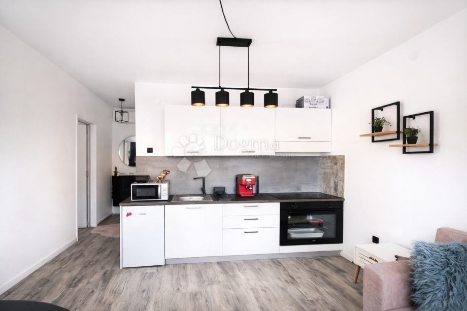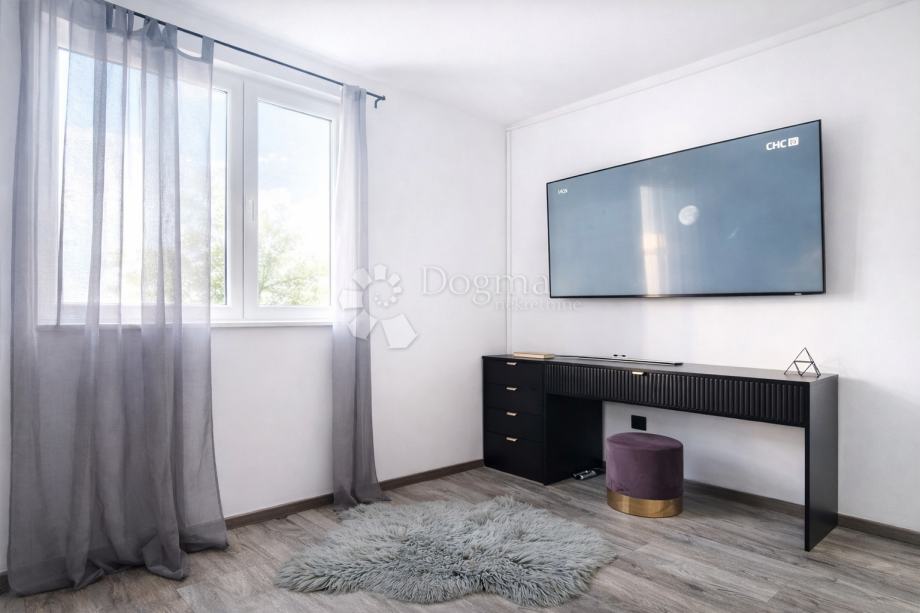 Stan se sastoji od dnevnog boravka povezanog s kuhinjom i blagovaonicom, spavaće sobe, kupaonice s tušem te natkrivene terase. Prostor je uređen modernim namještajem, dok PVC stolarija s dvostrukim ostakljenjem osigurava dobru toplinsku i zvučnu izolaciju te mirno okruženje.