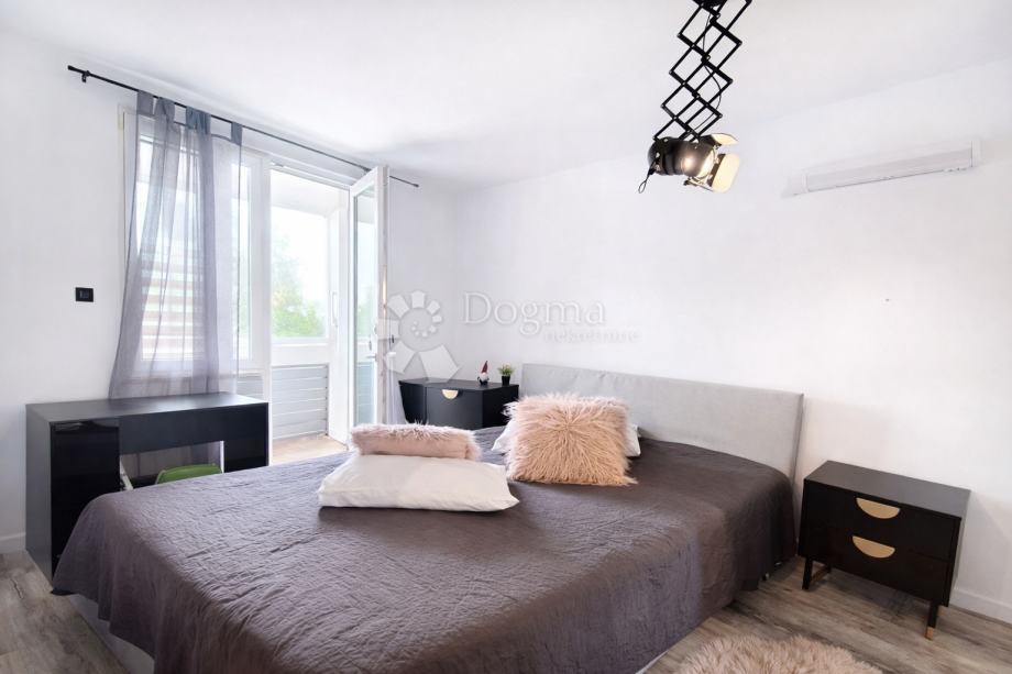 Stan je opremljen klimatizacijskim uređajem, električnim bojlerom te kvalitetnim podnim oblogama – keramičkim pločicama i laminatom. U neposrednoj blizini nalaze se svi važni sadržaji za svakodnevni život: trgovina (300 m), kafić (200 m), dječji vrtić (270 m) i ljekarna (300 m), što dodatno naglašava praktičnost ove lokacije.