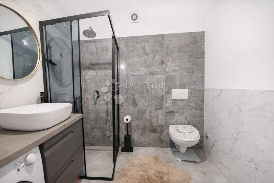 Na prodaju je moderan i funkcionalan stan u Rovinju, smješten u prizemlju kvalitetno građene stambene zgrade u mirnoj rezidencijalnoj četvrti. Stan je nedavno renoviran, u potpunosti namješten i spreman za useljenje, a odlikuje ga praktičan raspored te natkrivena terasa koja dodatno doprinosi ugodnom boravku. Idealan je izbor za mlade parove, starije osobe, ali i za sve koji traže udoban dom u blizini mora.