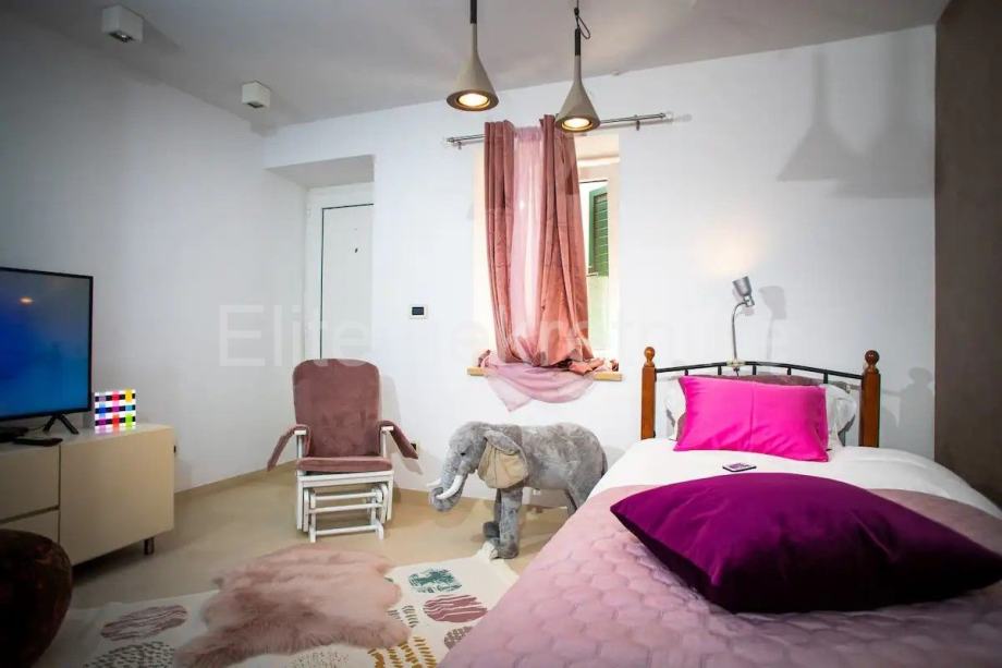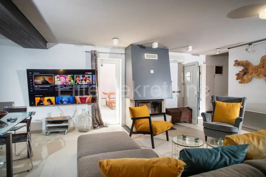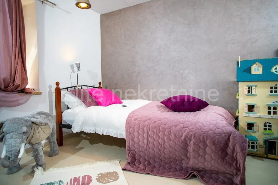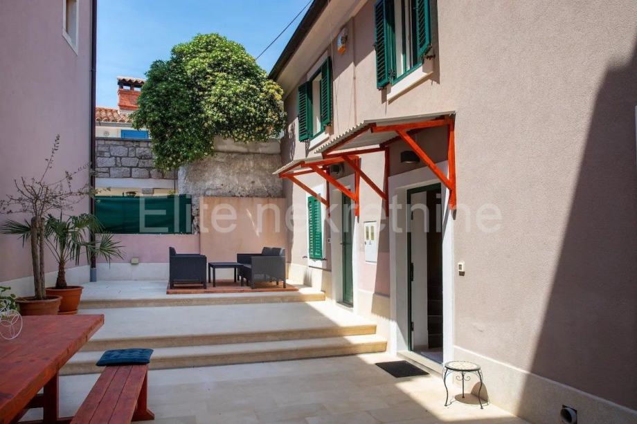Prodajemo predivno uređenu kuću u centru Rovinja, sa vlastitim parkirnim mjestom.U kući može boraviti 7 osoba.U prizemlju je dnevni boravak sa kaminom, kuhinja sa blagovaonom, kupaonica, zaseban WC te još jedna prostorija koja može biti spavaća soba, igraonica za djecu, te malo spremište.Na katu su smještene 2 spavaće sobe, 2 kupaonice, zaseban WC i spremište.Kuća ima prostranu terasu zaštićenu od pogleda.