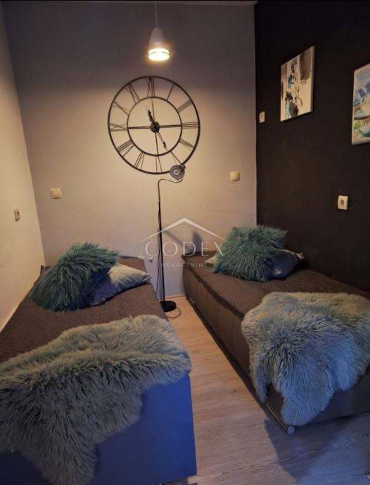 Prostor je jasno osvijetljen i pruža osjećaj udobnosti, idealan kako za vlastito stanovanje, tako i za turističku najam. Bez dodatnih ulaganja, stan je spreman za useljenje. Parking ispred zgrade dodatna je pogodnost koja će olakšati svakodnevnicu vlasnicima ili njihovim gostima.