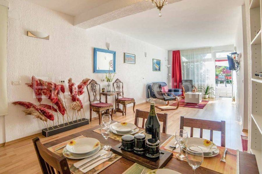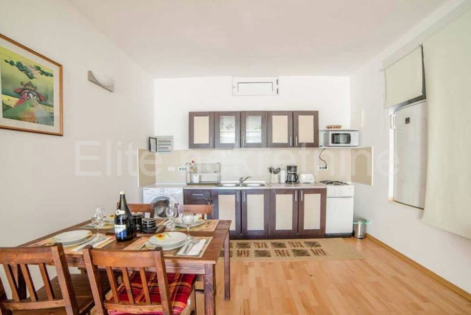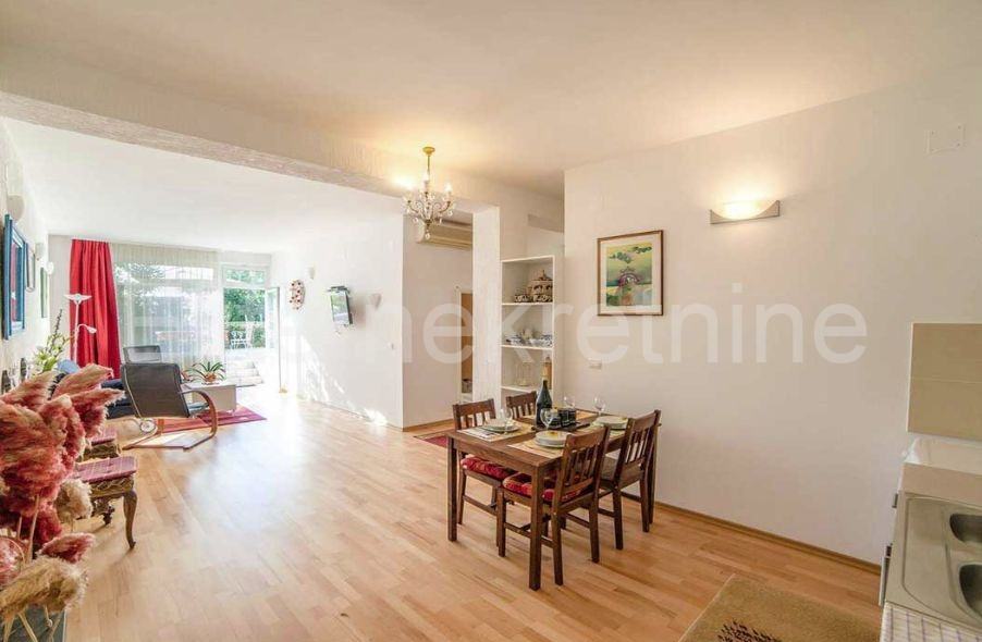 Apartman se sastoji od 2 sobe, kuhinje i dnevnog boravka, koncipiranih kao otvoren prostor, te kupaone. Nalazi se u sklopu novogradnje, no nema povezanosti sa ostalim stanarima. Poseban je ulaz i za pješake i za vozilo.