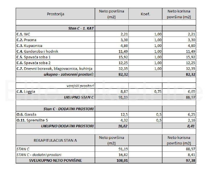 Prodaje se stan na prvom katu zgrade u izgradnji. Sastoji se od kuhinje s dnevnim boravkom i blagovaonom, dvije spavaće dobe, hodnika, kupaone, wc-a i utility-a. Iz dnevnog boravka se izlazi na prostranu loggiu. Parkirno mjesto i spremište su u garaži u podrumu zgrade. Podno grijanje s toplinskom pumpom, aluminijska stolarija te vrhunske podne obloge od drveta i keramike su samo neki od razloga zašto je ova nekretnina odlična investicija. Uređene plaže su udaljenje 250m a centar grada oko 2,5 km.Kraj radova je predviđen u 12. mjesecu 2023 godine!
