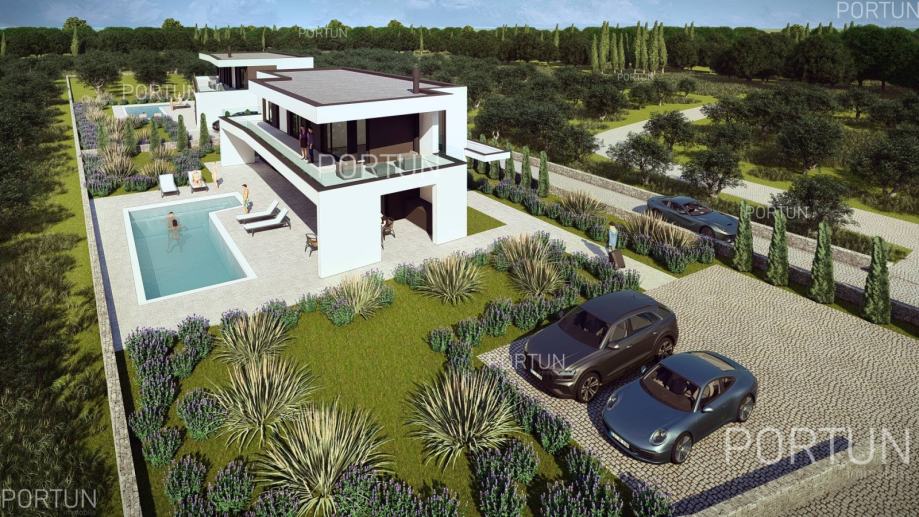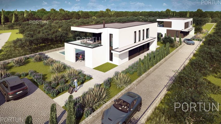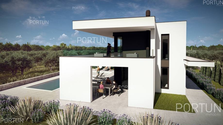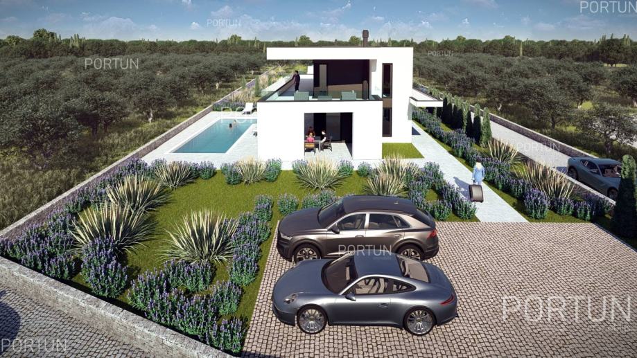 U tihoj seoskoj idili na području općine Kanfanar, svega 20 km udaljenoj od Rovinja, prodaje se zemljište s projektom i građevinskom dozvolom za izgradnju moderne vile s tri spavaće sobe. Ova suvremena vila ističe se ravnim površinama, prostranim natkrivenim terasama i duboko uvučenim prozorima s velikim staklenim površinama. Takav koncept omogućuje da zimi sunce grije kuću, dok se ljeti sprječava nepoželjno pregrijavanje. Velike nadstrešnice također pružaju ugodnu hladovinu s mnogo prostora za opuštanje i boravak. Unutrašnjost je moderno uređena i podijeljena na dvije etaže, pri čemu je gornja etaža s tri velike spavaće sobe namijenjena noćenju. Sve spavaće sobe imaju vlastite kupaonice, a najveća soba ima i terasu s hidromasažnom kadom. S te etaže pruža se predivan pogled sve do mora u lijepim sunčanim danima, a budući da je kuća orijentirana prema zapadu, s prvog kata se može vidjeti zalazak sunca u more. Prizemlje je većim dijelom zauzeo masivan dnevni boravak s kuhinjom i blagovaonicom, te dvije natkrivene terase ukupne površine gotovo 70 četvornih metara. U prizemlju se nalaze predsoblje, jedna kupaonica, ulazni hol sa stubištem te pomoćne prostorije - tehnička soba i praonica rublja. Vila se nalazi na zemljištu površine 967 četvornih metara, većim dijelom predviđenom za uređenje kao zelena površina s bujnim raslinjem, okružena kamenim zidom. Na ulazu u dvorište ostavljen je prostor za kamenom popločano parkiralište, iz kojega staza vodi prema vili. Bazen zajedno sa sunčalištem nalazi se na zapadnom dijelu zemljišta, idealno smješten pred dnevnim boravkom. Vila je savršeno smještena na mirnoj seoskoj lokaciji, pogodnoj za izlete do obližnjeg Rovinja, Limskog zaljeva, Bala i Svetvinčenta. Trgovine i gostionice se mogu pronaći u par kilometara udaljenom Kanfanaru ili Žminju. SAZNAJTE VIŠEViše informacija o oglasu broj 40549 saznajte na https://portun.comDirektan link na oglas: https://portun.com/hr/40549/Za sva dodatna pitanja na raspolaganju je agent posredovanja Alesandro Laginja +385919386003