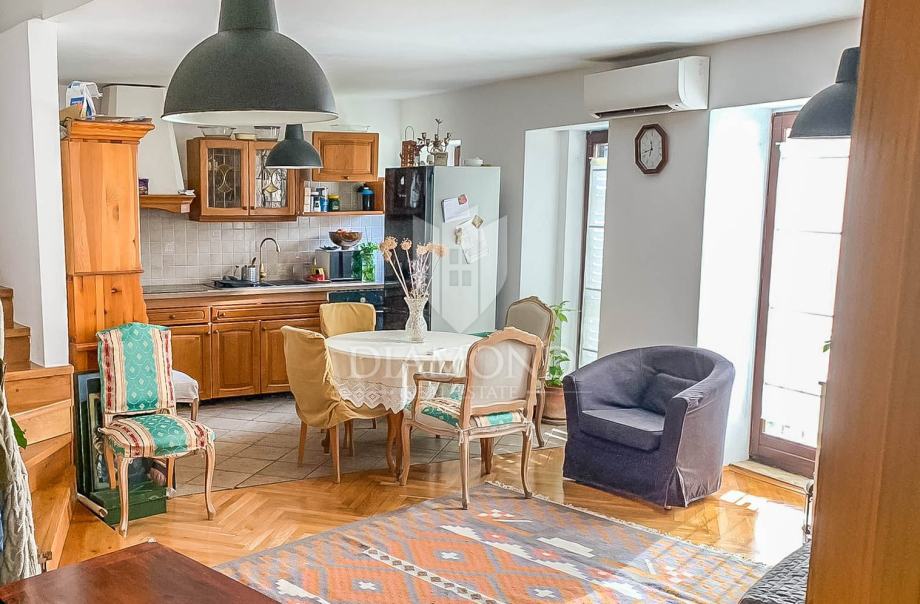 Kuća se proteže na tri etaže sa potkrovljem na cca 180m2. U prizemlju