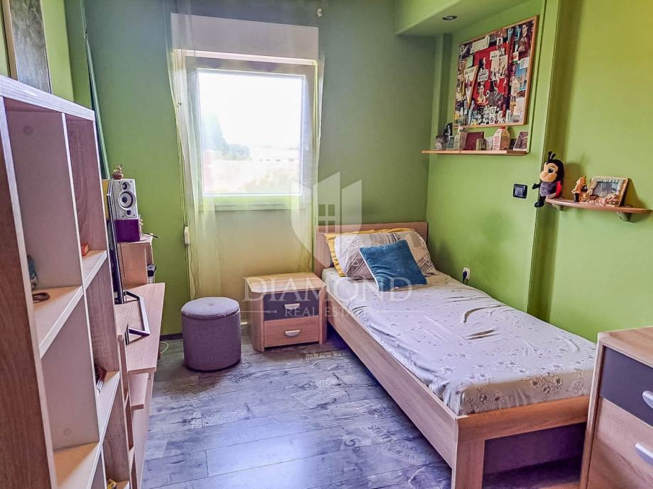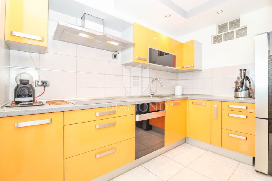 Stan koji ima kvadraturu od 89 m2, sastoji se od predsoblja, dnevnog dijela sa kuhinjom i blagovaonicom gdje ima i izlaz na terasu, dvije spavaće spavaće sobe te ostavom i kupaonicom. Stan je opremljen samo sa visokokvalitetnim namještajem po mjeri, te je nedavno renovirana kupaonica, promijenjeni prozori te postavljena izolacija.