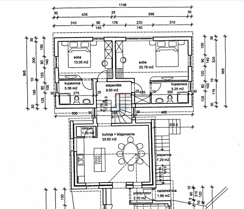 Kuća je sagrađena na 2 etaže,suteren i prizemlje ukupne korisne površine 180m2.