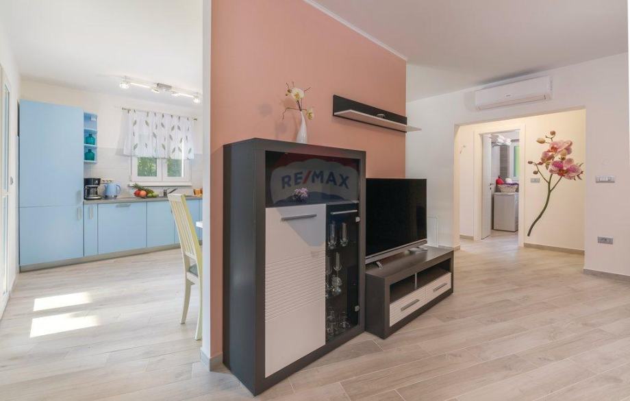 Na samo 5 kilometara od Rovinja, u netaknutoj prirodi, nalazi se ova kamena kuća na 50 metara od mora. Površine 80 m2, sastoji se od dnevnog boravka, kuhinje sa blagovaonom i 2 spavaće sobe,