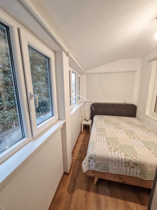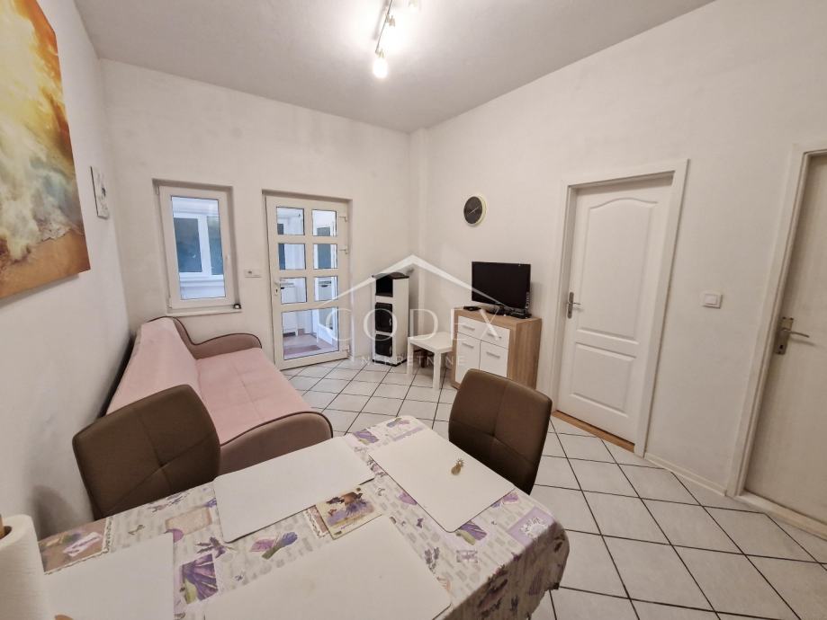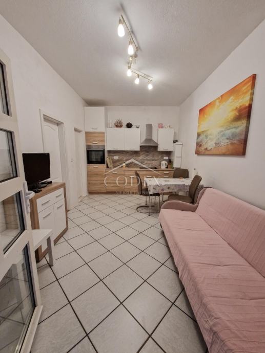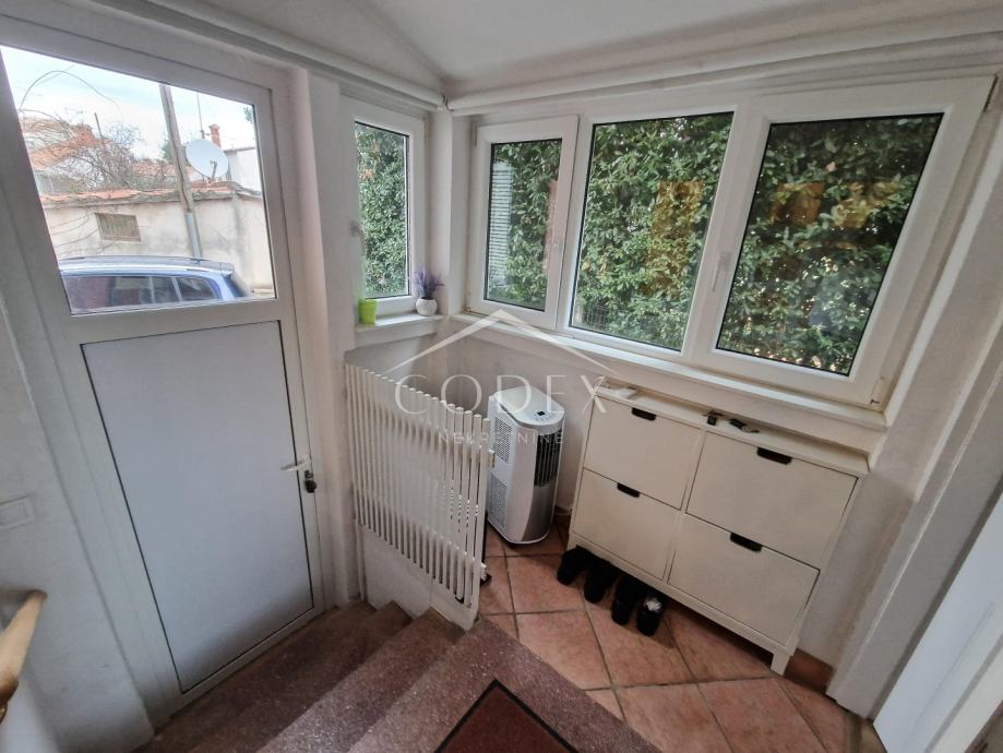 Na udaljenosti od 2 km od centra i 1 km od mora prodaje se stan u visokom prizemlju s posebnim ulazom.