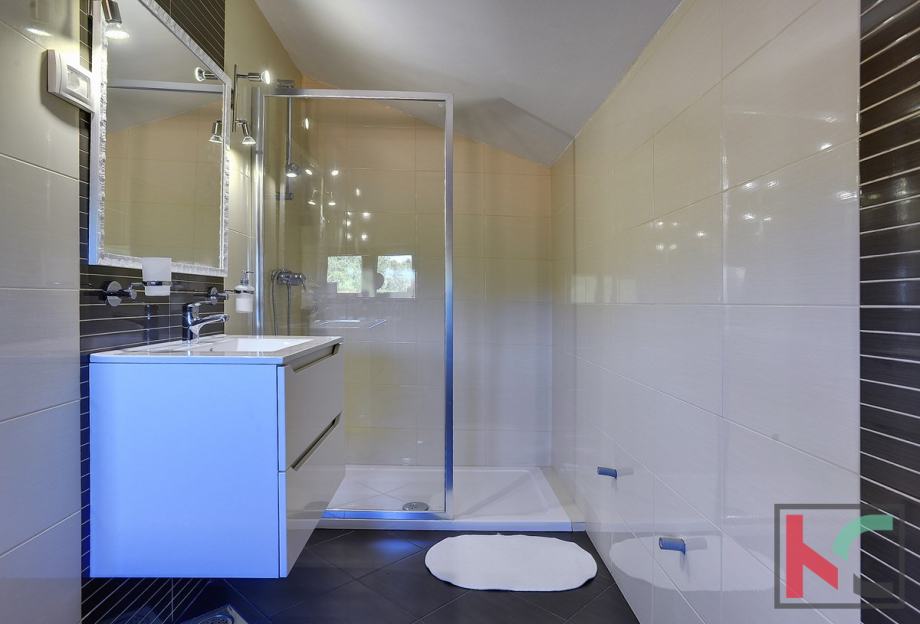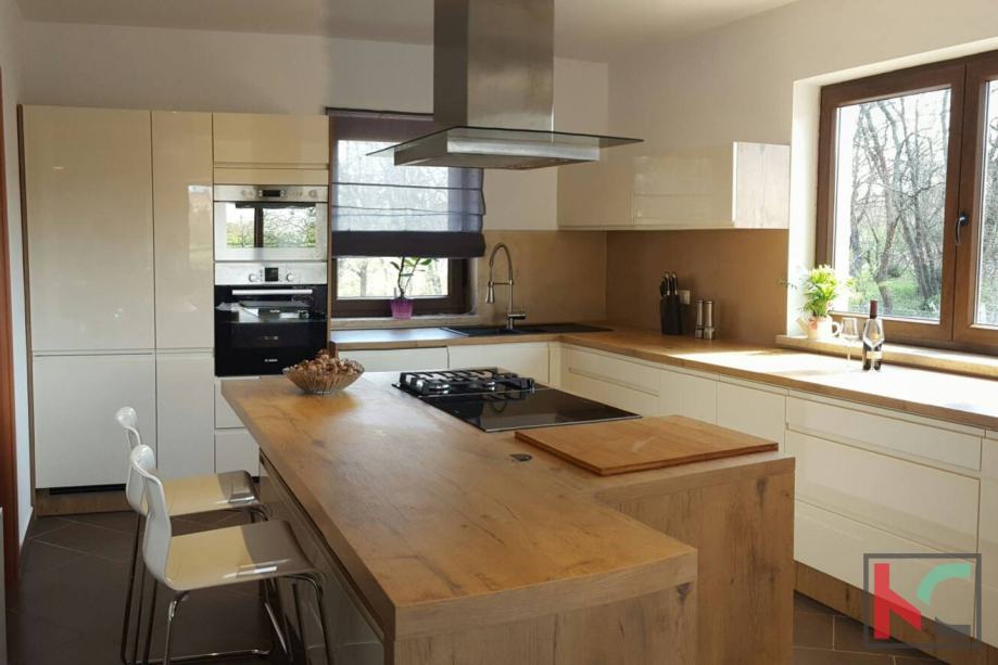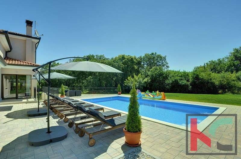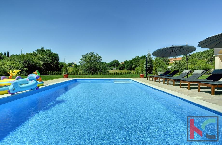 Prednost ove nekretnine je svakako izuzetno veliki bazen površine 54m2 gdje se može relaksirati sunčajući se na ležaljkama kao i uživati u hladu koji pruža pergola ili pak pripremajući specijalitete u kuhinji u kojima je najbolje uživati na vanjskoj natkrivenoj terasi.