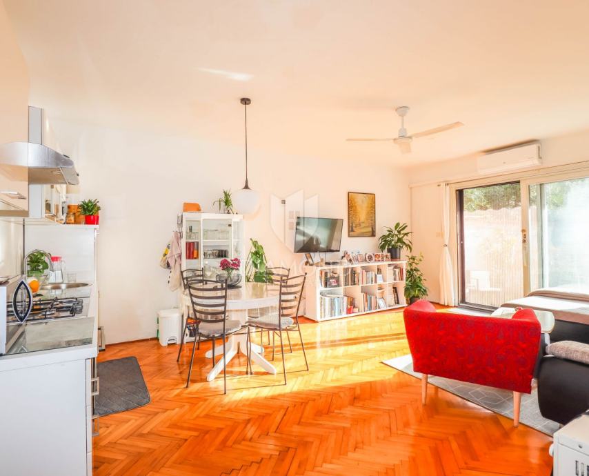 Stan ima čak 103 m² savršeno raspoređenog prostora: dvije prostrane spavaće sobe s direktnim izlazom na dvorište i terasu, prekrasno osvijetljen dnevni dio s kuhinjom i blagovaonicom, veliko kupatilo te veliko spremište koje ima struju, vodu i prozore – idealno za treću spavaću sobu, radni prostor ili hobi sobu. Nekretnina je puna prirodnog svjetla, izuzetno ugodna i ne zahtijeva nikakva dodatna ulaganja.