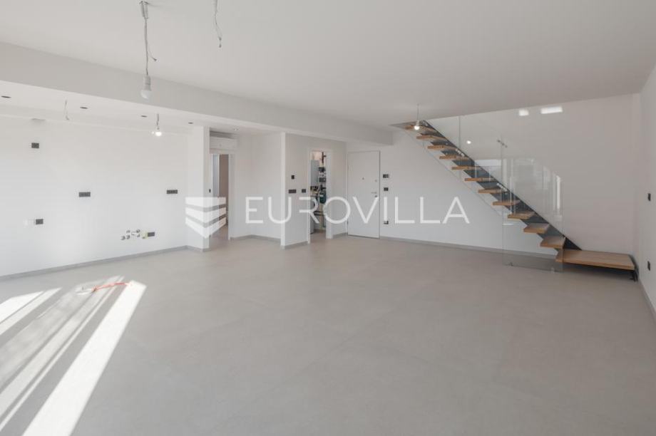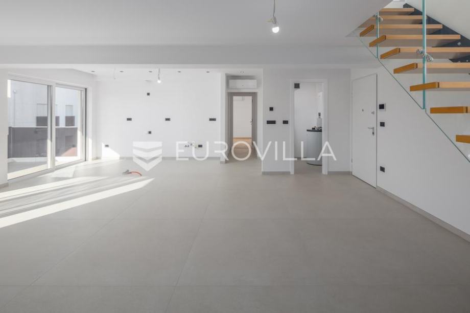 Istra, Rovinj, prekrasan stan na dvije etaže NKP 201,71m2 na prvom katu s 4 spavaće sobe, 3 kupaone i podzemnom garažom s dva parkirna mjesta. Stan E zatvorene površine 160m2 nalazi se na prvom katu. Ulaskom u stan ulazi se u open space kuhinju, dnevni boravak i blagovaonu iz kojeg se izlazi na...