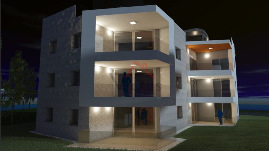 Nekretnina se nalazi na prvom katu zgrade te se sastoji od ulaznog hodnika, dnevnog boravka spojenog s kuhinjom i blagovaonicom, tri spavaće sobe, 2 kupaone i natkrivene terase od 16m2 iz koje imati ćete predivan pogled na more.