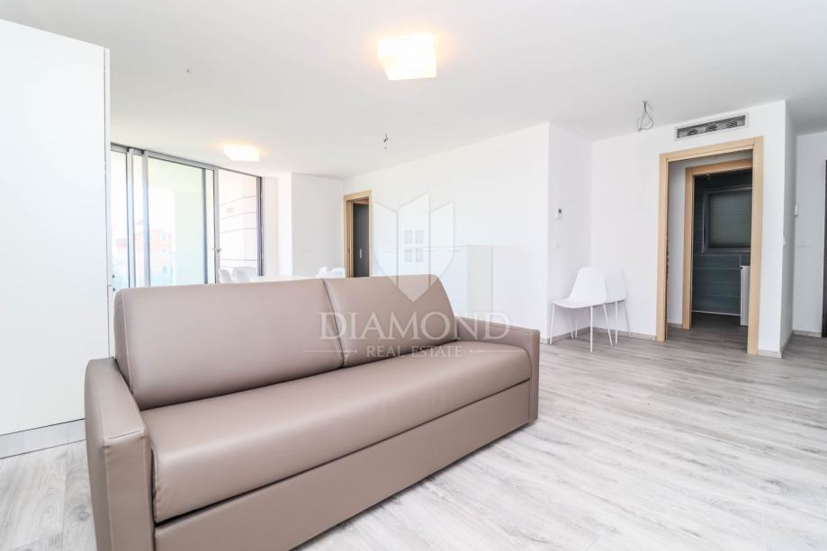 Posebne značajke ovog stana je to što je savršeno pozicioniran kako bi bio osvijetljen tokom cijeloga dana, a tome pomažu i velika staklena stijena u dnevnom dijelu te široki prozori sa električnim roletama. Specifikacije koje se moraju spomenuti su da je grijanje i hlađenje riješeno putem Daikin klima uređaja, vrata su protuprovalna i protupožarna, a zgrada posjeduje i lift. Stan je namješten te se takav i prodaje.