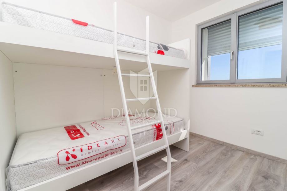 U neposrednoj blizini mora te prekrasnih plaža, sa vizurom Rovinja, nalazi se manja zgrada sa par stanova. Zgrada je novogradnja, te je na savršenoj poziciji gdje ima pogled na more te starogradsku jezgru iz svih stanova. U blizini se nalaze trgovina, ugostiteljska ponuda, dječji vrtić, dok su svi ostali sadržaji u centru grada udaljeni svega 2km .