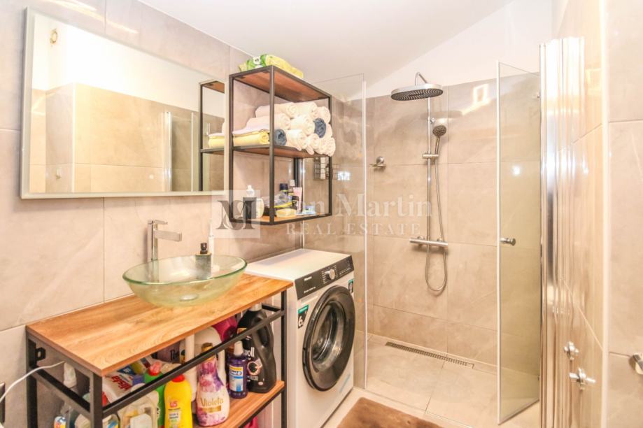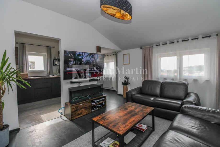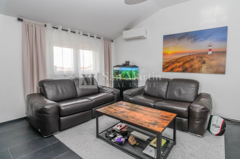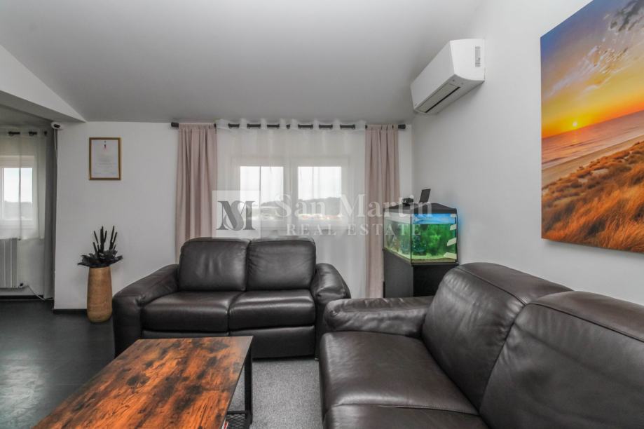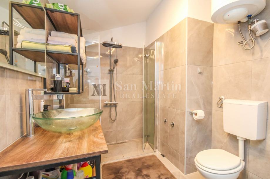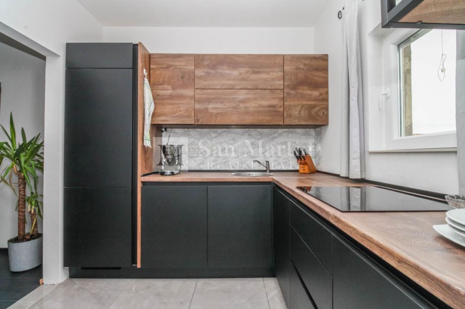 Stan je kompletno renoviran iz temelja te su se koristili kvalitetni materijali i opremljen je prekrasnim namještajem koji je uključen u cijenu. Stan je klimatiziran, te su osigurani i radijatori na struju za grijanje. Osim prostorija u stanu tu su i drvarnica te zajednička terasa za ljetna druženja. Parking se nalazi ispred zgrade.