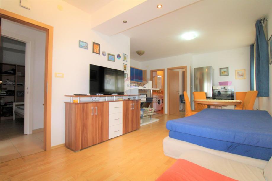 Stan se sastoji od natkrivene terase/ulaznog predprostora,velikog dnevnog boravka s kuhinjom,2 spavaće sobe i kupatila.