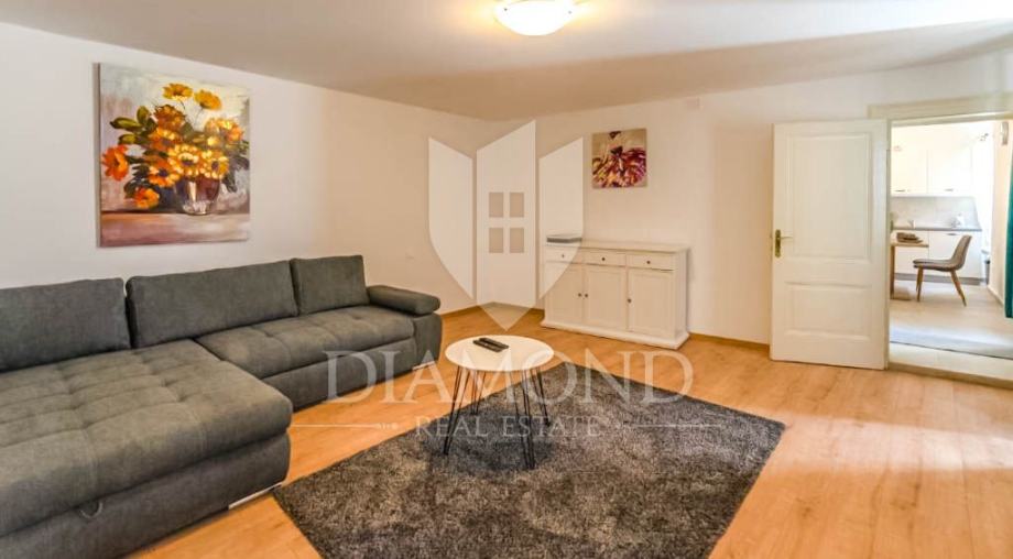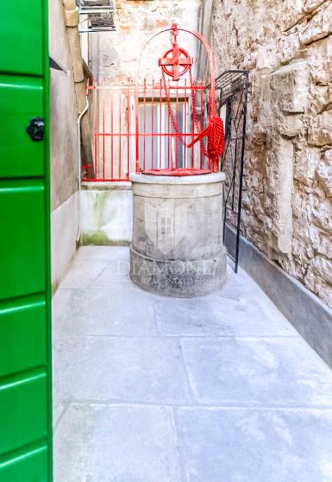 This apartment is situated on the first floor of a renovated historic building and has a total area of 75 square meters. It consists of a living room, kitchen and dining area, bathroom, storage room, and a bedroom that leads to a charming terrace, which is a significant bonus in Rovinj. The apartment was completely renovated last year and requires no additional investment.