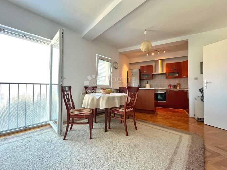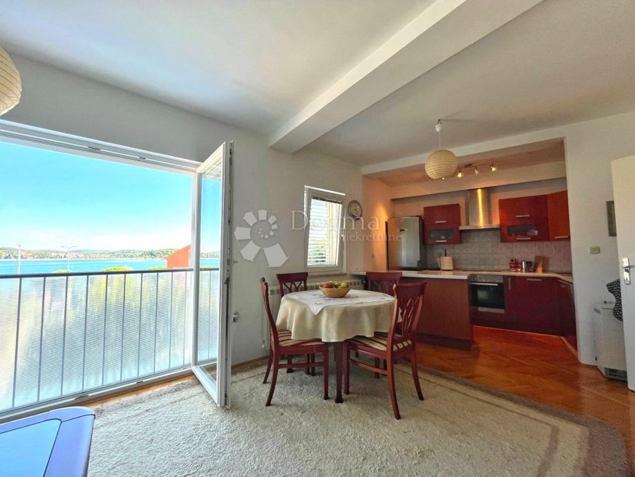 Sastoji se od ulaznog hodnika , prirodno ovjetljenog open spacea sa kuhinjom ,blagavaonom i dnevnim boravkom izkojih se pruža očaravajući pogled na more, dviju spavaćih soba ,dvije kupaonice .