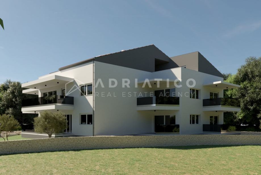 Stan se nalazi u prizemlju a sastoji se od 3 spavaće sobe, 2 kupaonice, spremišta, "open space" dnevnog boravka s blagovaonicom i kuhinjom, te 2 terase s kojih se izlazi na vrt koji je pripadak stanu.