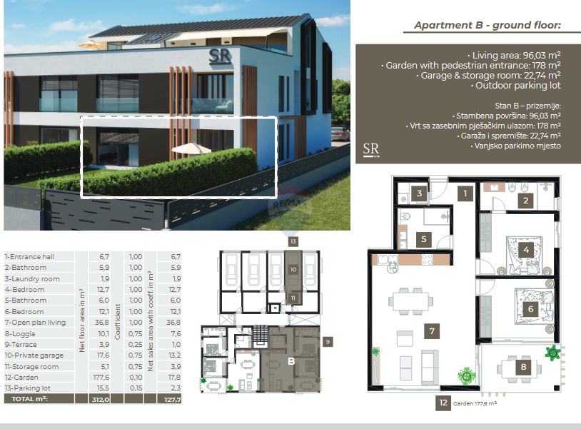 Ispred stana nalazi se vlastiti vrt od 177,6m2.