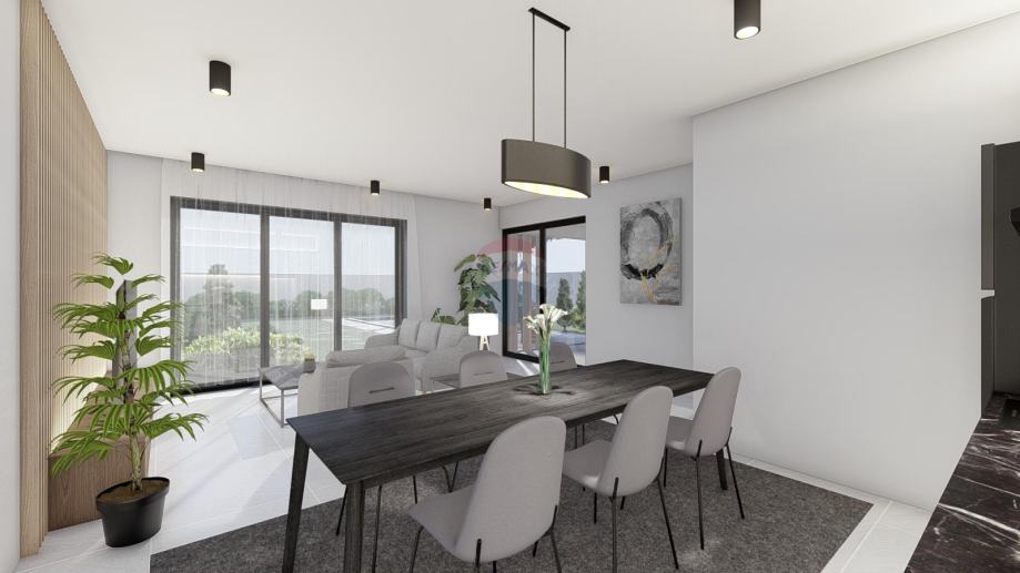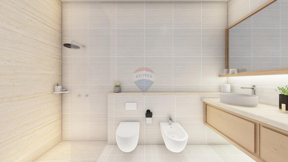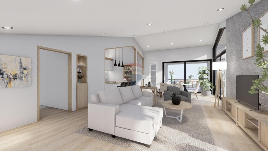 Stan će se sastojati od ulaznog predprostora+hodnika,praonice, velikog dnevnog boravka, kuhinje te izlaza na natkrivenu terasu, 2 spavaće sobe i 2 kupaonice.