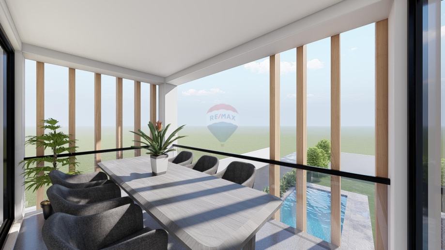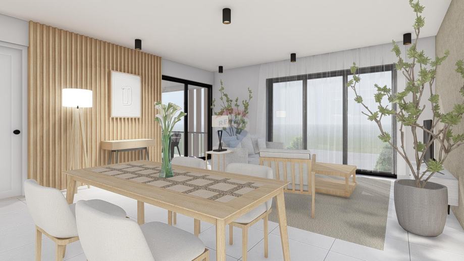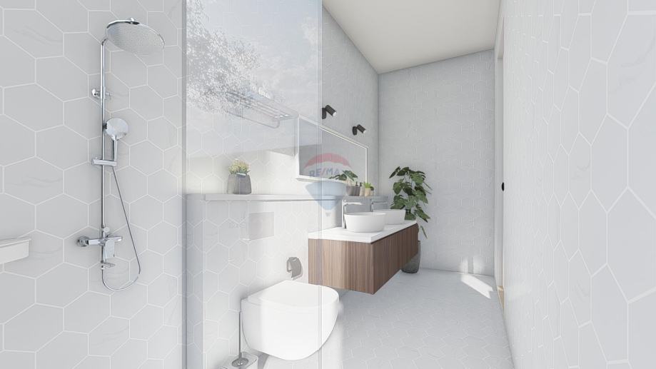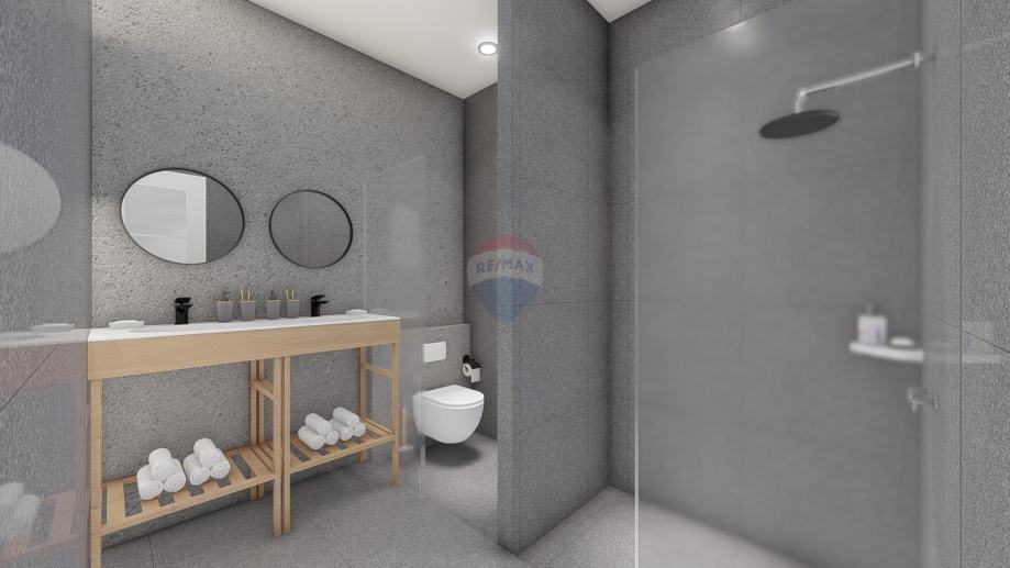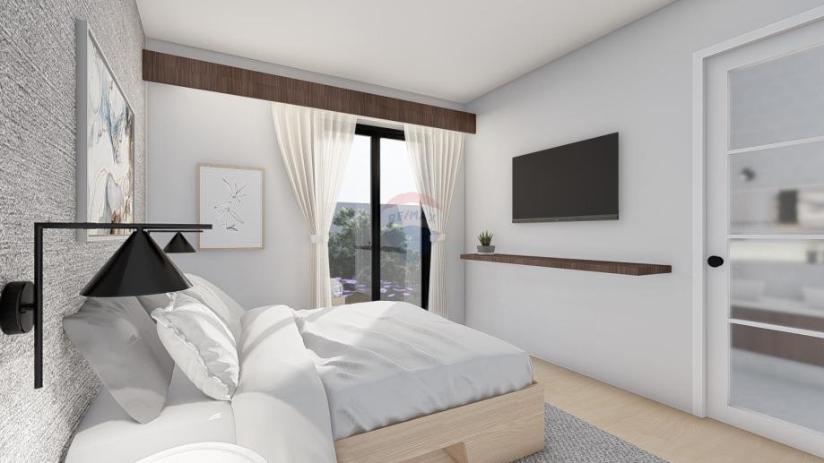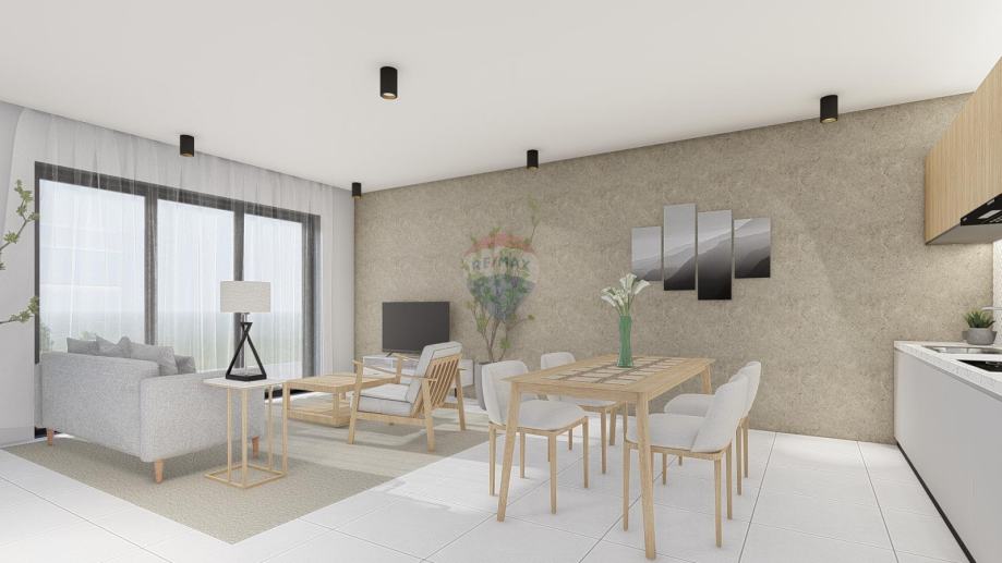 Stan će se sastojati od ulaznog predprostora+hodnika,praonice, velikog dnevnog boravka, kuhinje te izlaza na natkrivenu terasu, 2 spavaće sobe i 2 kupaonice.