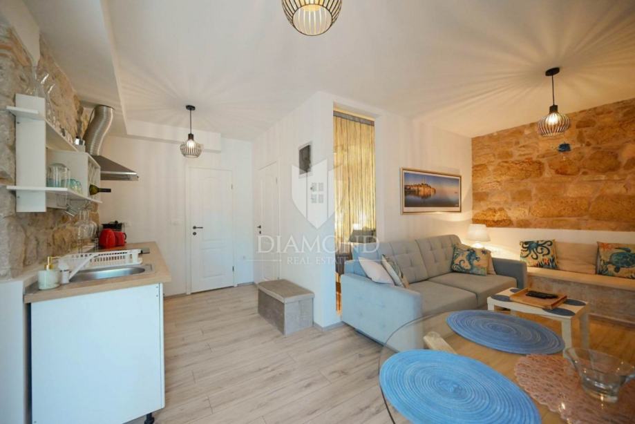 U srcu prekrasnog Rovinja, na samo nekoliko koraka od slikovitog poluotoka, nalazi se ovaj šarmantni apartman smješten u prizemlju klasične kamene zgrade.