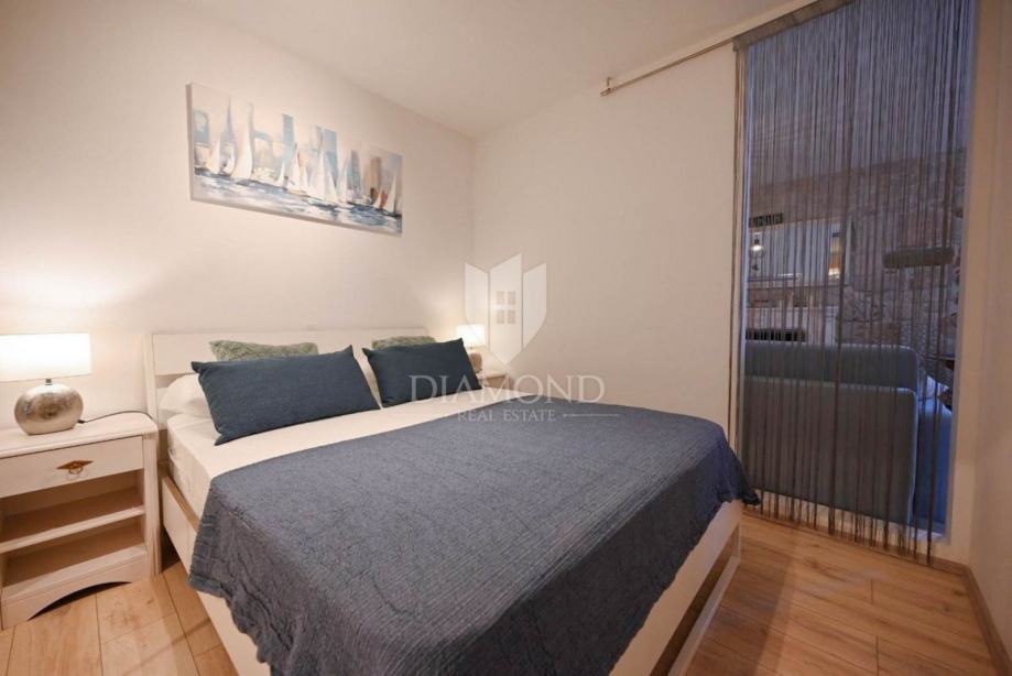 Stan površine 31 m² odiše toplinom i svjetlom te nudi otvoreni koncept dnevnog boravka s kuhinjom, odvojenu spavaću sobu i moderno kupatilo. Potpuno je namješten i spreman za turistički najam, što ga čini izvrsnom investicijom. Ispred apartmana nalazi se privatni prostor sa stolom i stolicama, savršen za opuštanje i uživanje u dugim ljetnim danima, uz uvijek prisutan blagi povjetarac koji osvježava bez obzira na doba dana.
