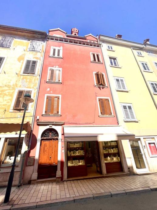 Kuća u nizu u strogom centru Rovinja, na svega 50 metara do mora, s 4 stambene jedinice i djelomičnim pogledom na more. Kuća se sastoji od 4 etaže i visokog potkrovlja. U prodaji su 3 etaže (1., 2. i 3. kat) i visoko potkrovlje. Na svakoj etaži nalazi se po jedan stan sa dvije spavaće sobe površine 55m2, a u visokom potkrovlju je stan s jednom spavaćom sobom 30m2. Kuća je zbog svoje izuzetne lokacije odlična za turističko iznajmljivanje kroz butik hotel ili apartmane. Isto tako prvi kat je moguće iznajmljivati kao poslovni prostor a stanovi na gornjim etažama se mogu koristiti za stanovanje i život u centru jednog od najljepših gradova u Hrvatskoj. Kuća je većim djelom adaptirana te ima novu vanjsku i unutarnju stolariju. Čisto vlasništvo 1/1 i uredni papiri gradnje.