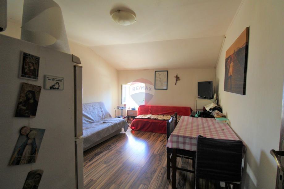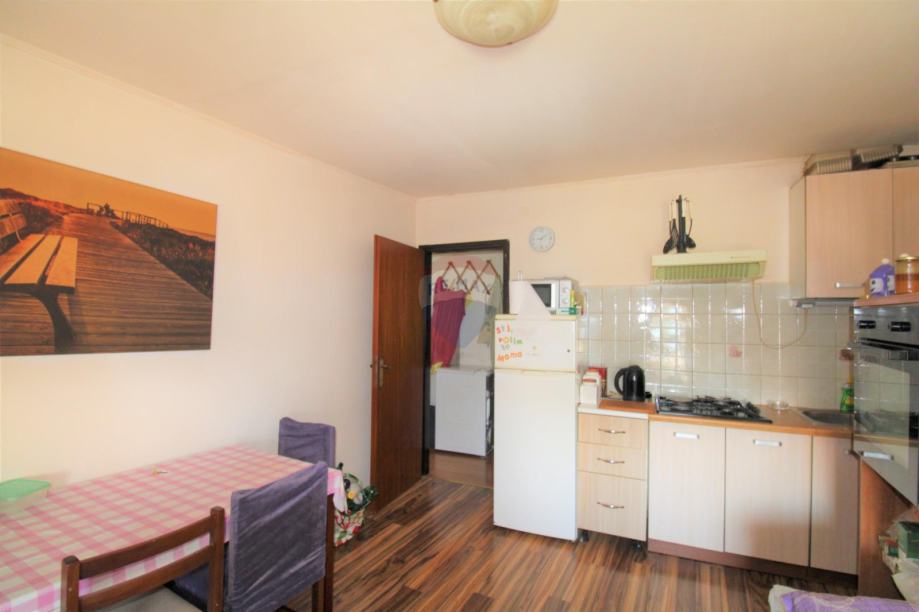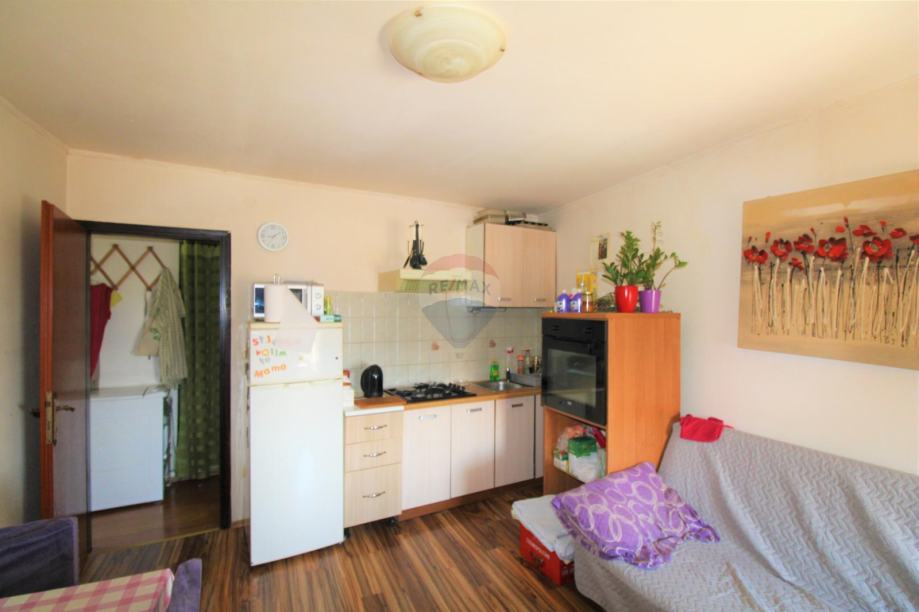 Stan je trenutno koncipiran kao 2 stana odvojenih hodnikom ,svaki stan ima dnevno boravak s kuhinjom,spavaću sobu i kupatilo.