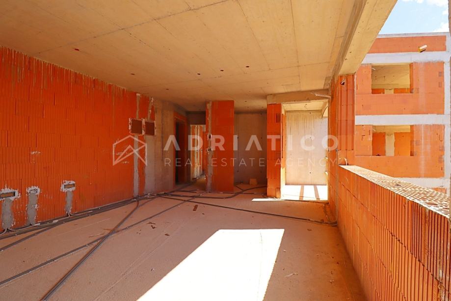Na prvom katu zgrade nalazi se stan površine 100m2, a sastoji se od ulaznog prostora, prostranog dnevnog boravka, kuhinje i blagovaonice, 3 spavaće sobe, 2 kupaonice i 2 loggie.
