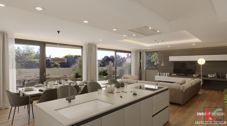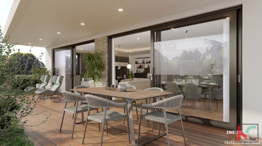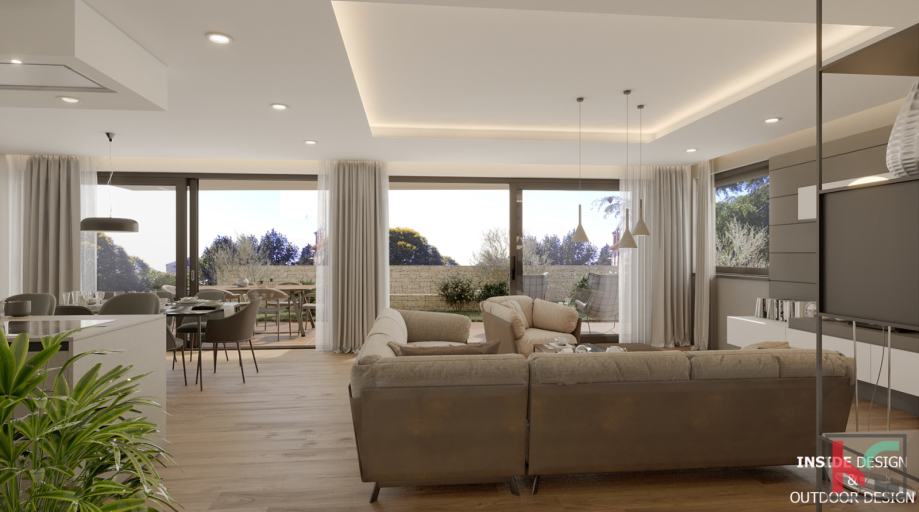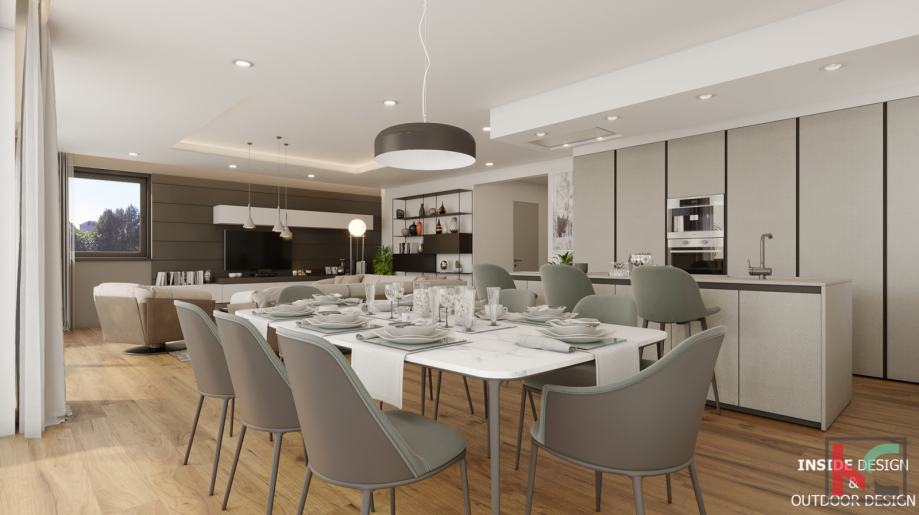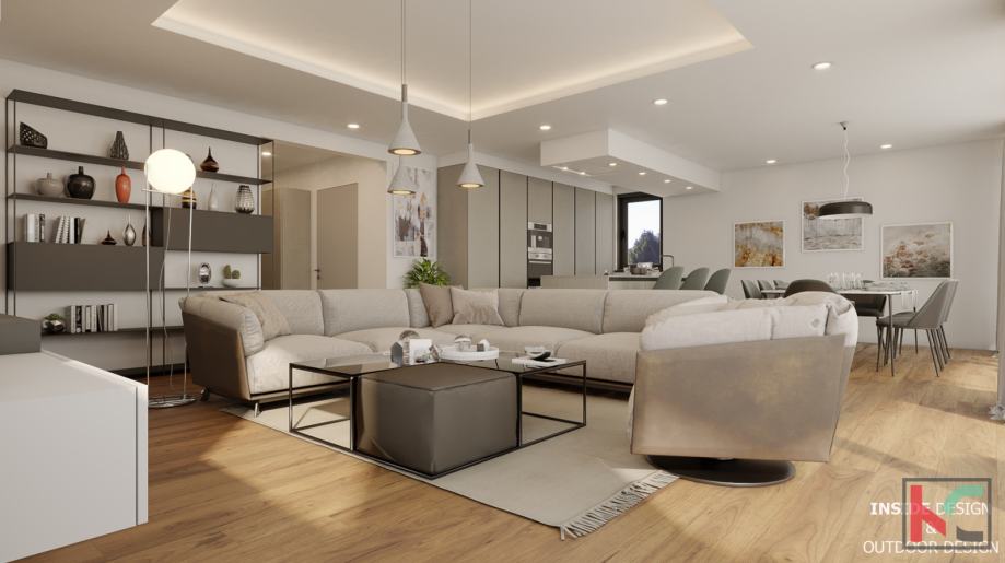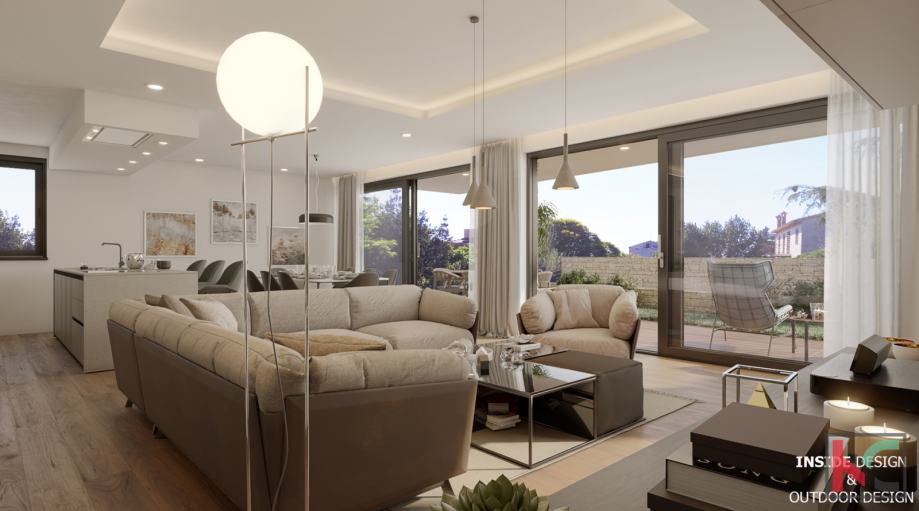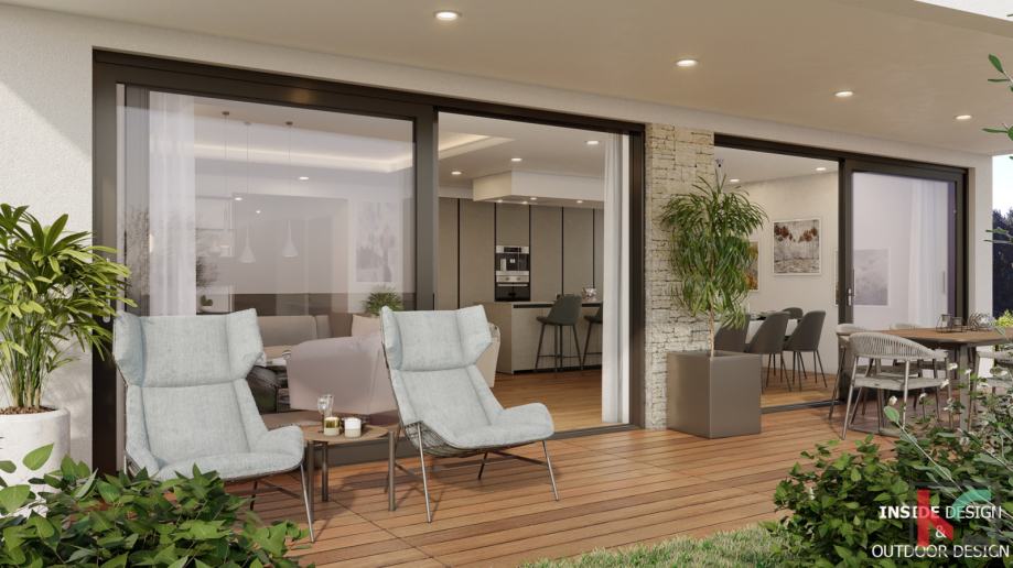 Iskoristivost stambenog prostora je savršena kao i tlocrtni raspored prostorija koji podrazumijeva ulazno predsoblje, komforan dnevni boravak i kuhinju sa blagovaonicom površine 55m2 koja će imati izlaz na terasu 25m2 sa nastavkom na prostran uređeni vrt od 126m2, spavaći dio je odvojen od dnevnog dijela te se tu nalaze velike dvije sobe površine 17m2 i 19m2, svaka sa svojom en suite kupaonicom površine 6,5m2 i malim balkonom, u sklopu stana nalazi se laundry prostorija i ostava.