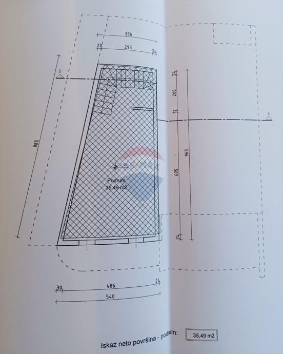 U podrumu od ca. 35m2 izvršena je priprema instalacija,struje vode,kanalizacije i dimnjaka kako bi postao konoba.