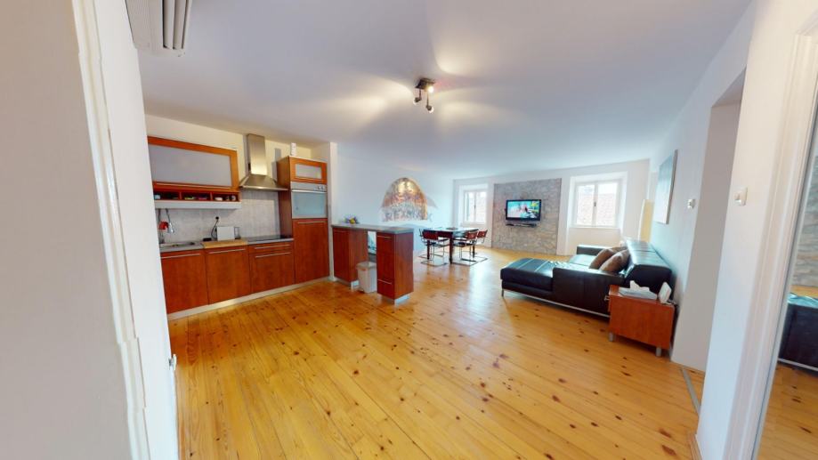 Radi se o stanu u poznatoj baroknoj palači,koji se smjestio na 2.,ujedno i zadnjem katu te broji 80m2 korisne površine odličnog rasporeda.