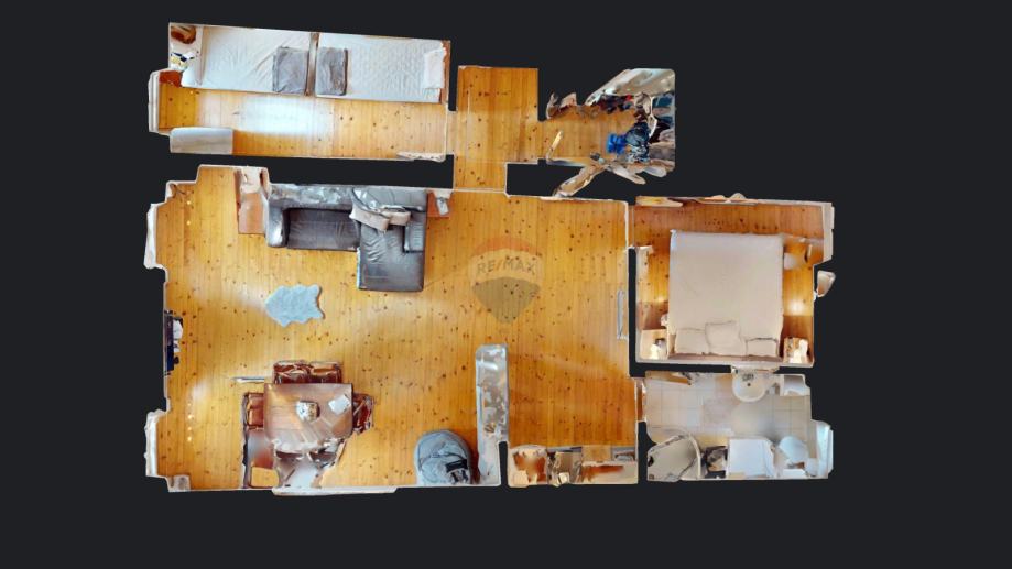 Sastoji se od ulaznog hodnika,2 spavaće sobe,stvarno veoma velikog dnevnog boravka,kuhinje i kupaonice.