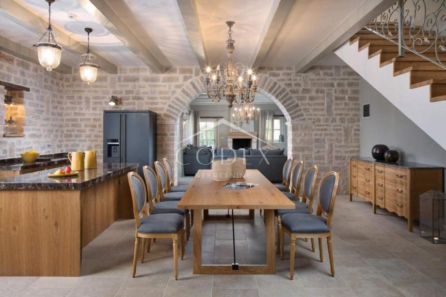 Prodaje se ekskluzivna ladanjska villa s bazenom na zelenim obroncima Istre. Ovu prekrasnu villu krasi skupocjeni interijer, veliki bazen, privatni kompleks sportskih terena i povlaštena lokacije u središtu Istre. Ljepotica vintage šarma, savršenih dimenzija za velika obiteljska okupljanja, proteže se na 359m2 sa okućnicom od 880 m2.
