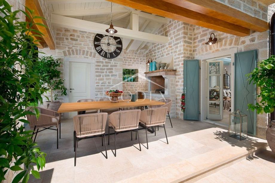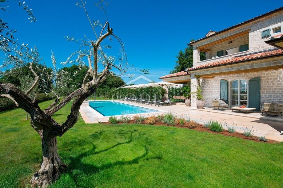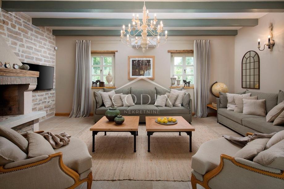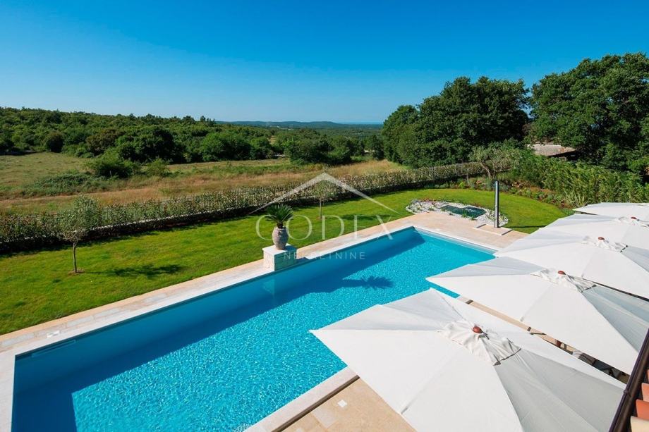 Prodaje se ekskluzivna ladanjska villa s bazenom na zelenim obroncima Istre. Ovu prekrasnu villu krasi skupocjeni interijer, veliki bazen, privatni kompleks sportskih terena i povlaštena lokacije u središtu Istre. Ljepotica vintage šarma, savršenih dimenzija za velika obiteljska okupljanja, proteže se na 372 m2 sa okućnicom od 1.611 m2.
