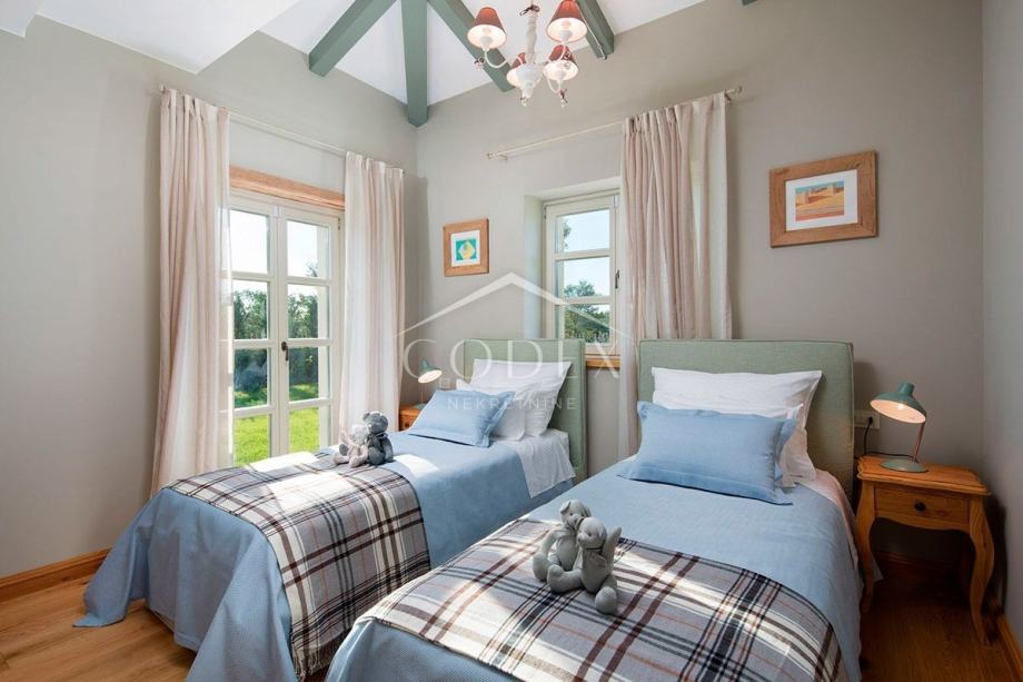 Na katu su raspoređene tri dvokrevetne sobe s kupaonicama i bračnim krevetima. Dvije spavaće sobe imaju izlaz na terase s kojih se otvara prekrasan pogled na zelenilo te more i Rovinj u daljini. Ovdje će svatko pronaći vlastiti kutak mira u lijepo uređenim spavaćim odajama koje obećavaju slatke snove i savršene popodnevne sijeste.