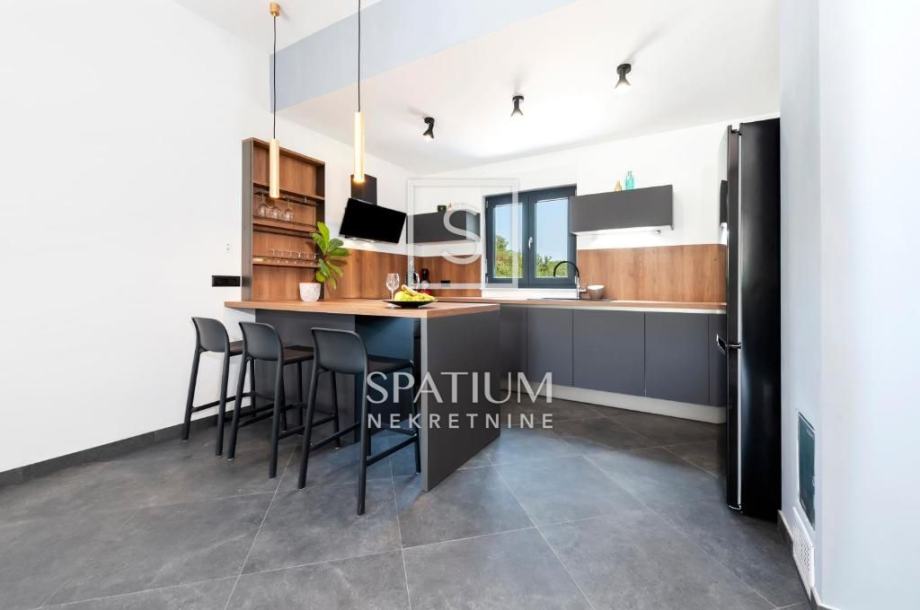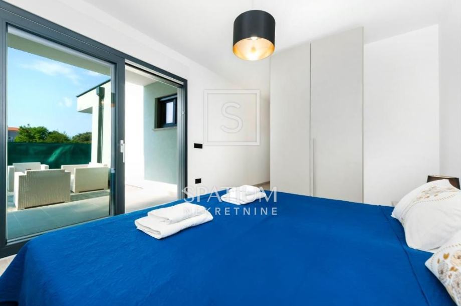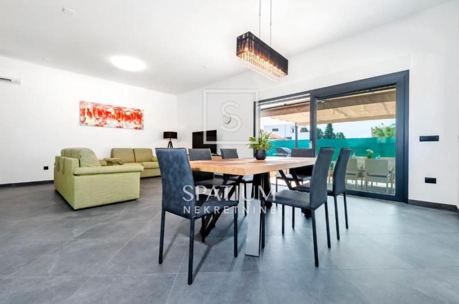 ROVINJ, u ponudu smo dobili modernu montažnu vilu, prizemnicu površine 139 m2 s bazenom, smještenu na lijepoj i mirnoj poziciji. Nekretnina je luksuzno opremljena, sastoji se od dnevnog boravka s kuhinjom i blagovaonicom, dvije spavaće sobe, tri kupaonice i hodnika. Na potpuno ograđenoj okućnici od 552 m2 nalazi se i bazen od 24 m2 sa sunčalištem, terasom i roštiljem. Objekt je smješten u mirnom dijelu mjesta izvan gradske "vreve", okružena borovom šumom, 700 m udaljena od plaže i 2.5 km od centra grada. Radi svoje mikrolokacije ova je nekretnina izvrsna prilika u vidu investicije za bavljenje turističkom djelatnošću kao i za miran obiteljski život.