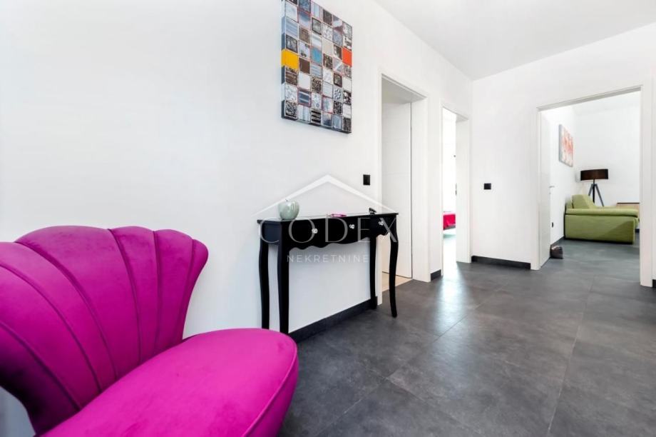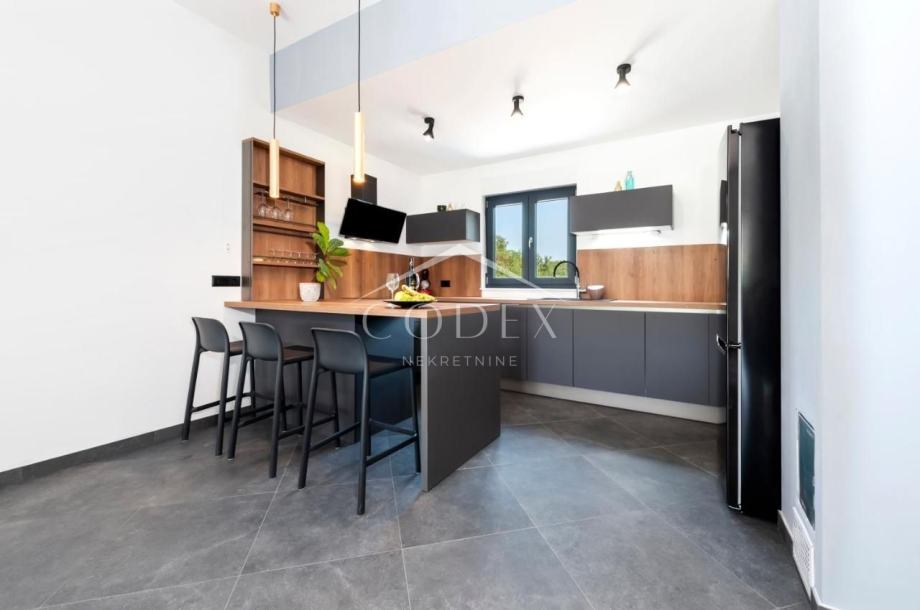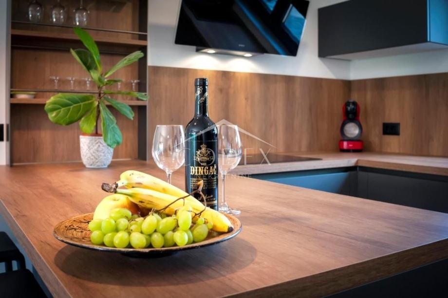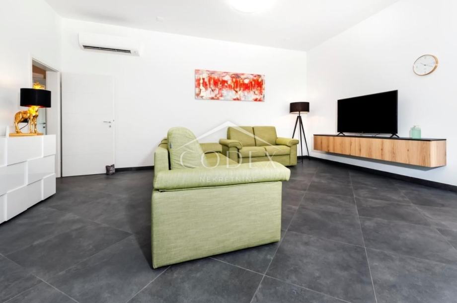 Ova moderna kuća proteže se na 139 m2 stambene površine, te se sastoji od 2 spavaće sobe s vlastitim kupaonicama, kuhinje, komfornog dnevnog boravka, te je luksuzno opremljena kako bi Vaš boravak bio što ugodniji.