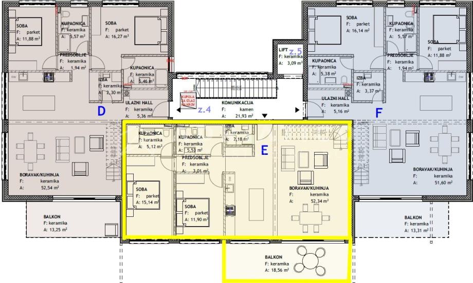 Stanu pripadaju i spremište i 2 garažna mjesta koja se nalaze u podrumu zgrade iz kojeg se do stana dolazi liftom.