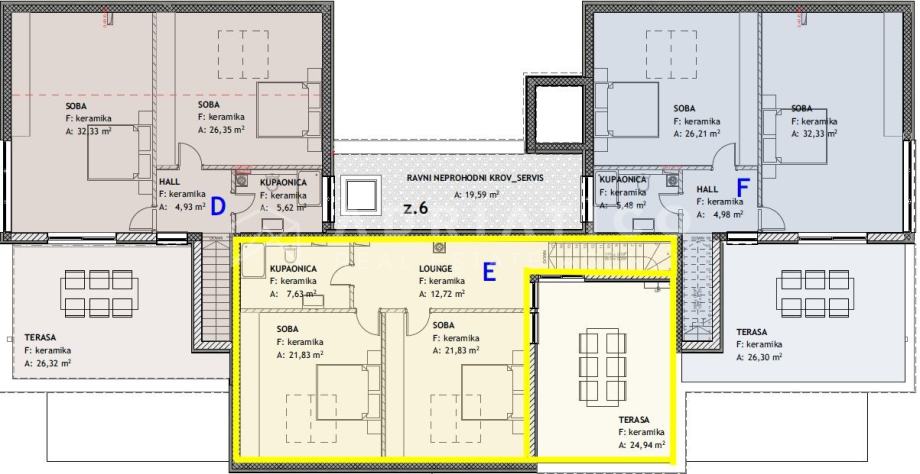 Na 2. etaži koja se nalazi u potrkovlju pronaći ćete 2 sobe i kupaonicu te pravo blago ovog stana, terasu od čak 24,94 m2