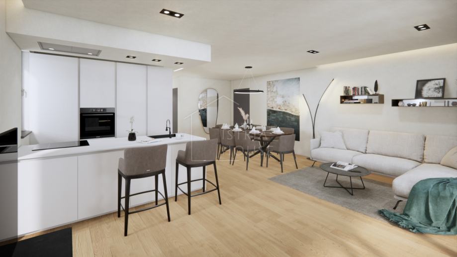 Stan se prodaje nenamješten, osim kupaonica i podova koji će biti kompletno opremljeni, ali se budućem kupcu nudi mogućnost da ako mu se namještaj sa slika svidio isti uredi sa identičnim namještajem.