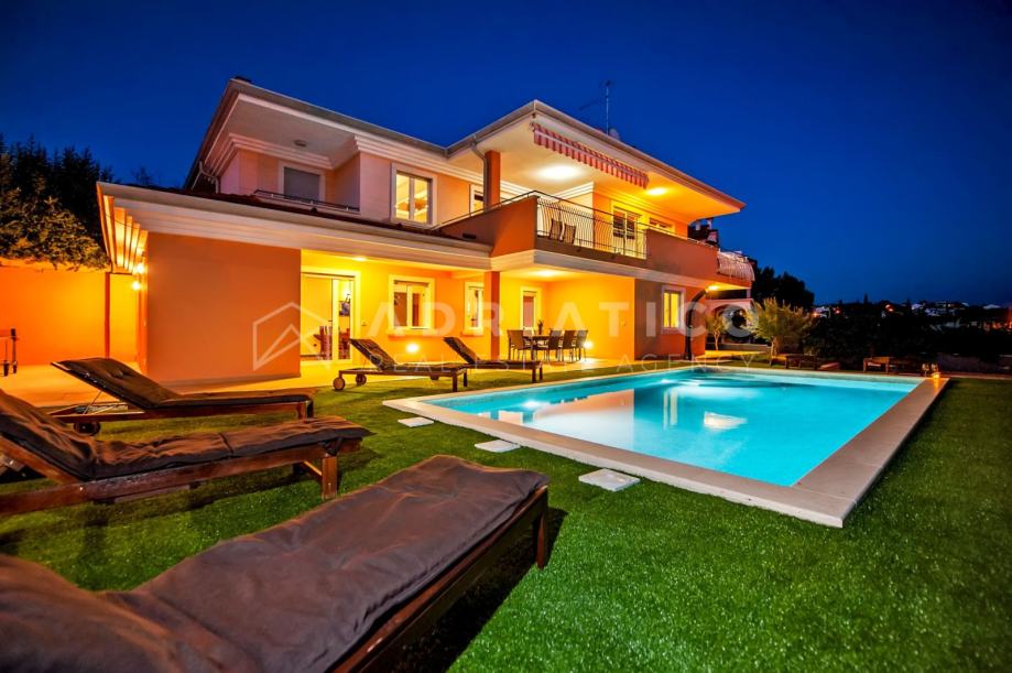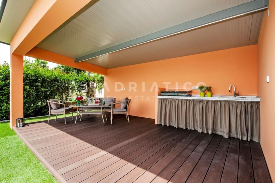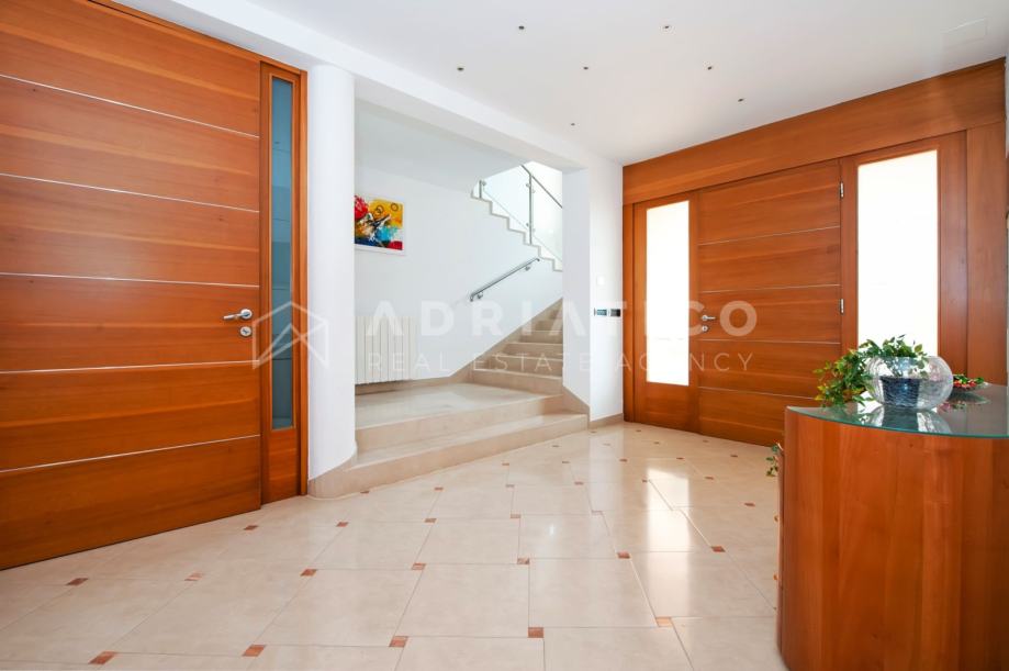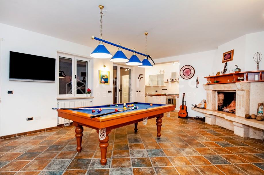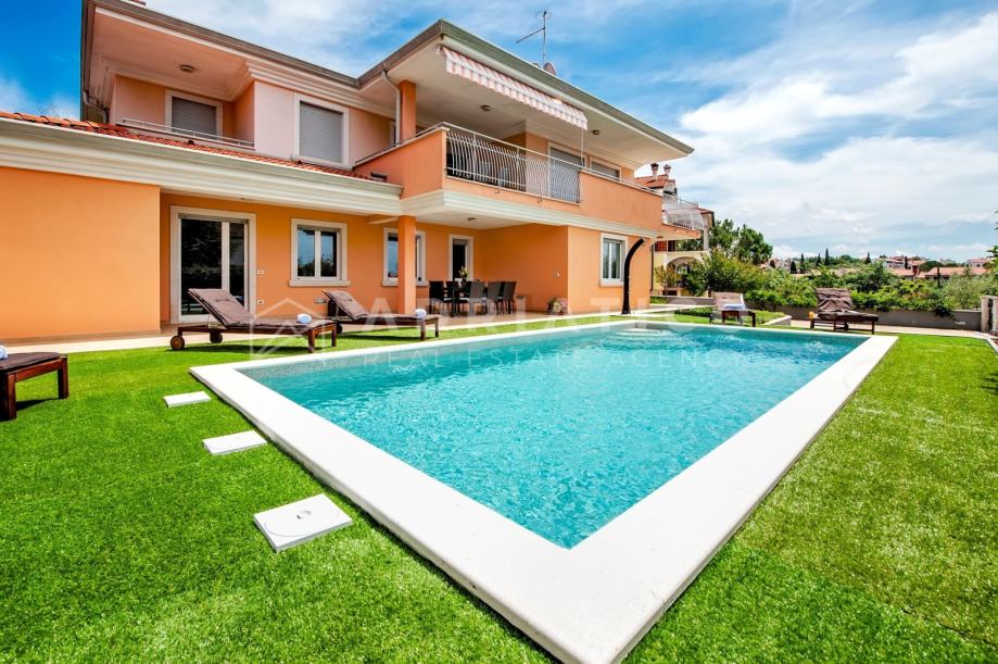 U mirnom susjedstvu nedaleko Rovinja, na parceli od 1719m2 smjestila se ova raskošna villa sveukupne stambene površine 550m2.