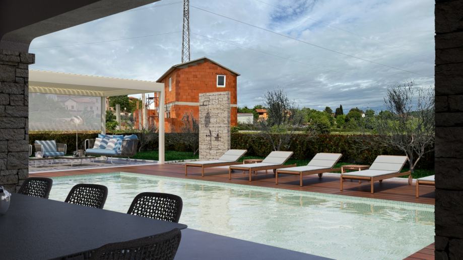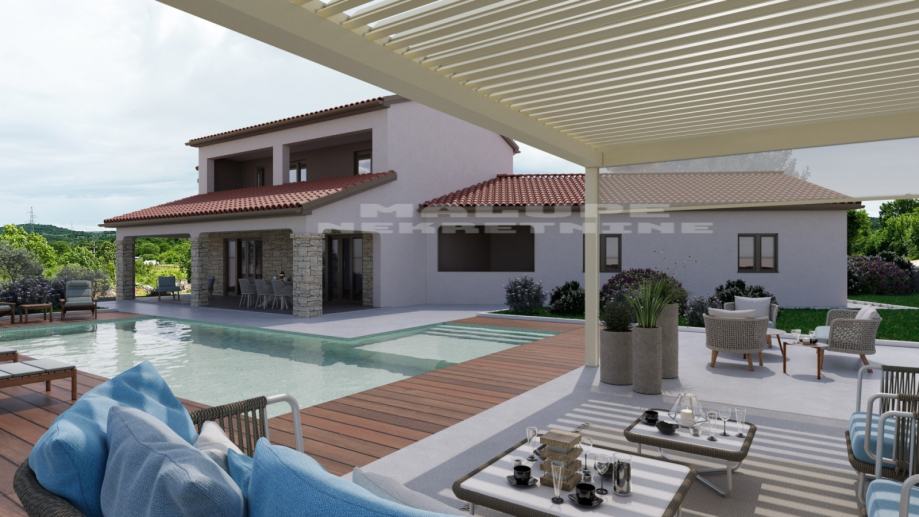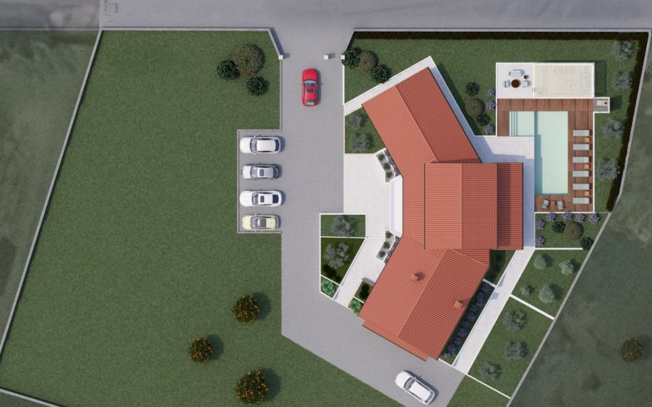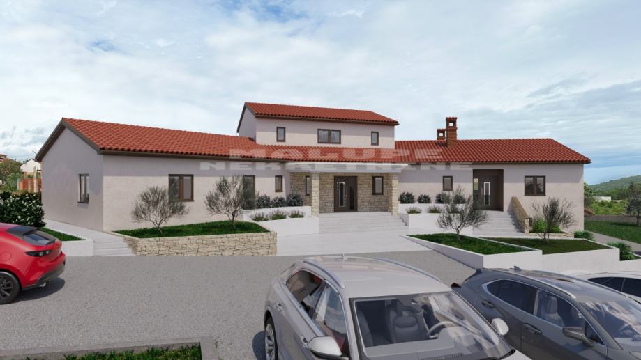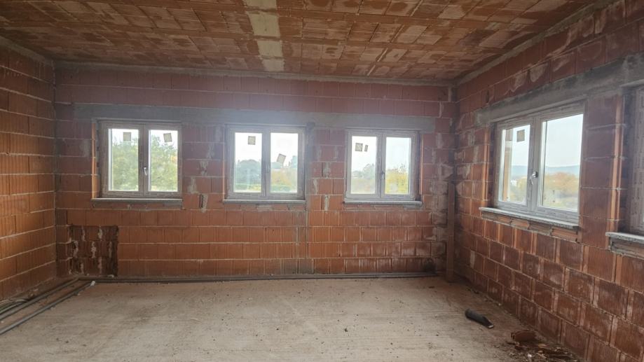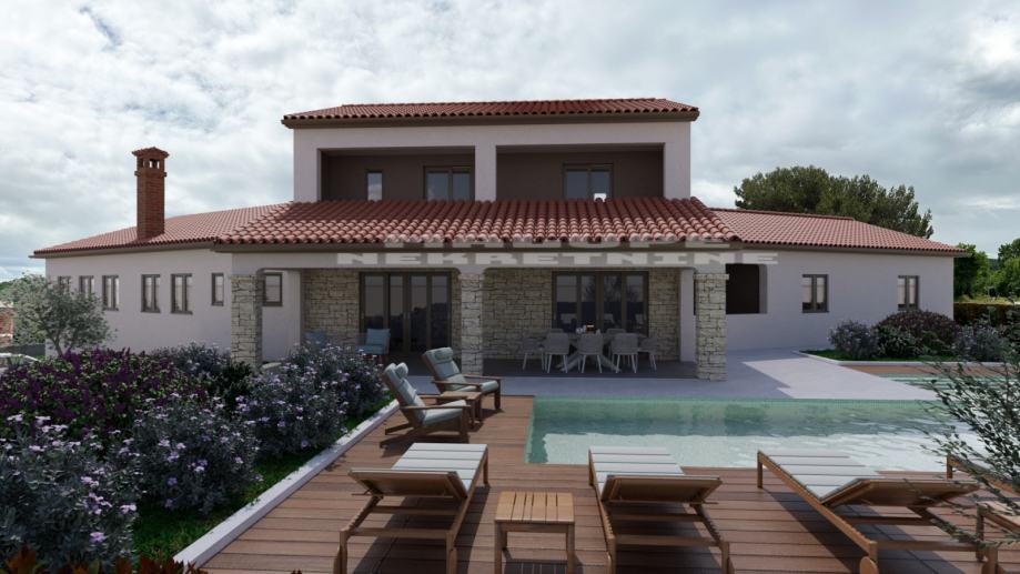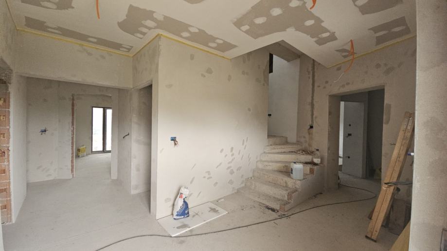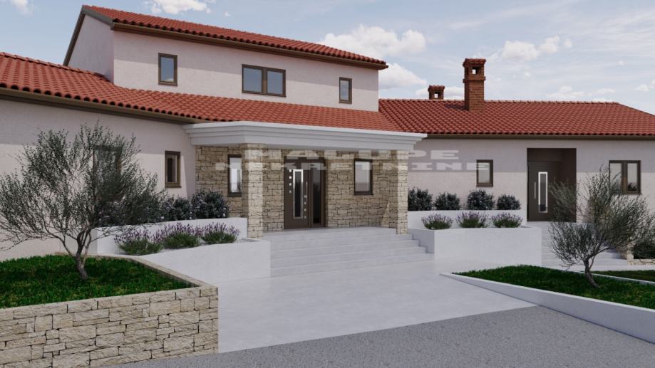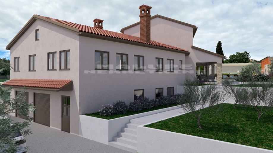 Prodaje se roh bau kuća u Rovinjskom selu, neto površine 450m2 na velikoj građevinskoj parceli od 2000 m2.