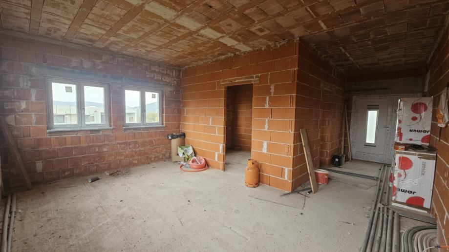 Kuća je podjeljena u 2 jedinice. Jedna jedinica je predviđena za stan s dnevnim boravkom, terasom, 4 spavaće sobe, 3 kupaonice i wc, dok druga ima namjenu poslovnog prostora gdje je predviđena dentalna ordinacija.