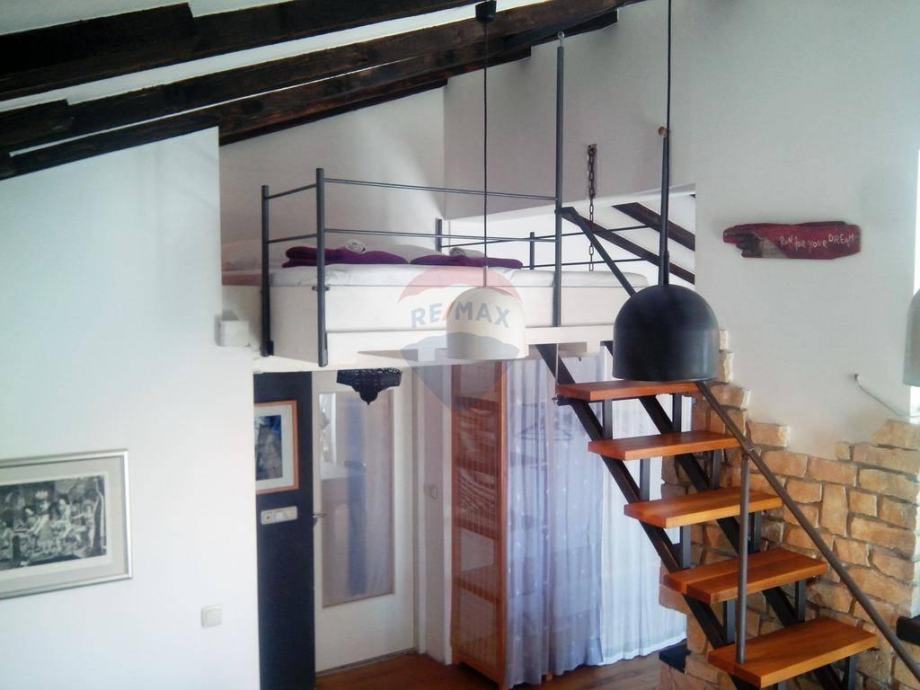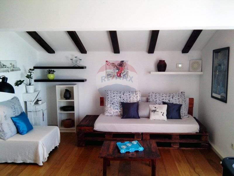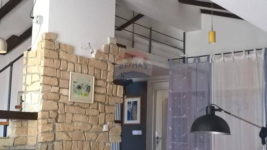Lijepo je uređen, a sastoji se od otvorenog prostora u kojem je dnevni boravak, kuhinja, galerija za spavanje, jedna manja spavaća soba, velika kupaona, te terasa sa pogledom na more.