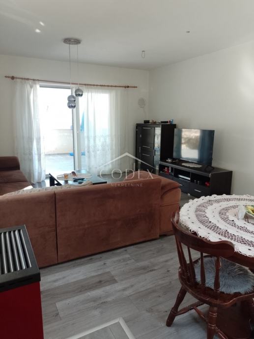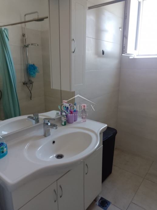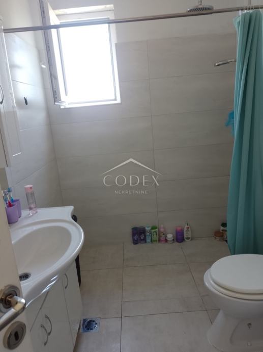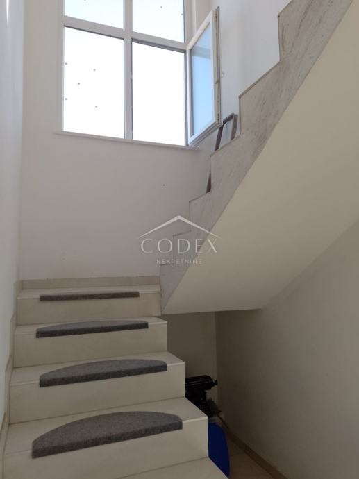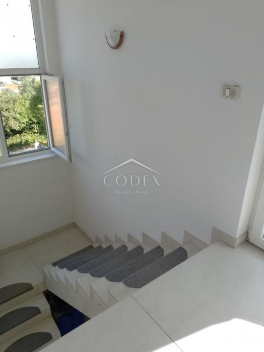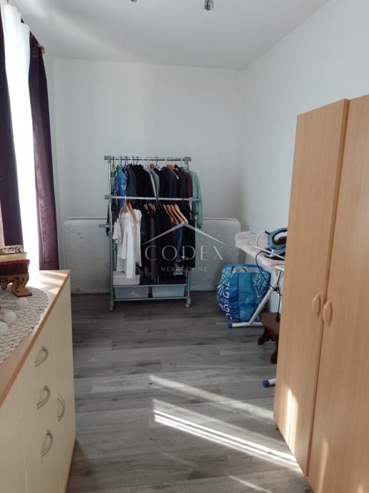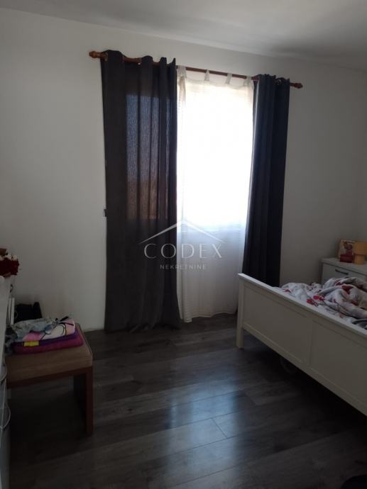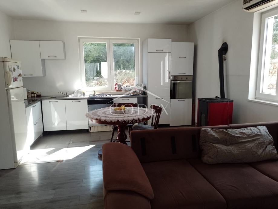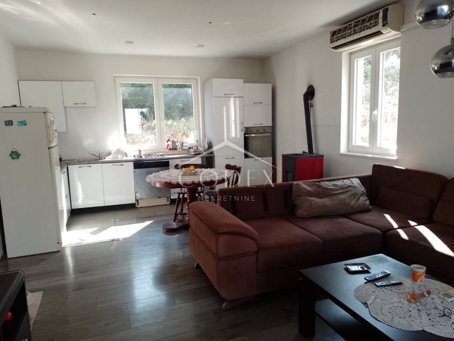 U prizemlju se nalazi dvosobni stan s izlazom na veliku terasu i okućnicu. Unutarnjim stepenicama dolazi se na kat kuće gdje se nalazi veća soba, manja sobica trenutno u namjeni garderobe, dnevna soba s blagovaonom i kuhinjom i kupaona.
